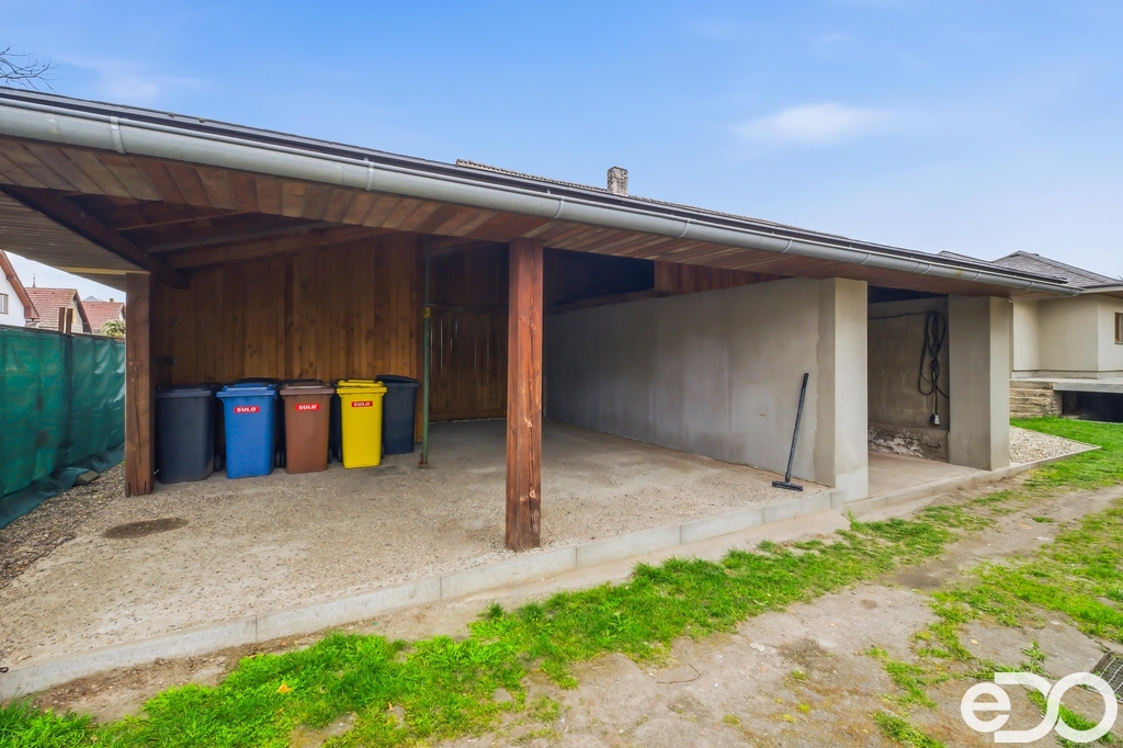 Kryté stání pro 3 vozy, na dvorku je možnost dalšího místa.