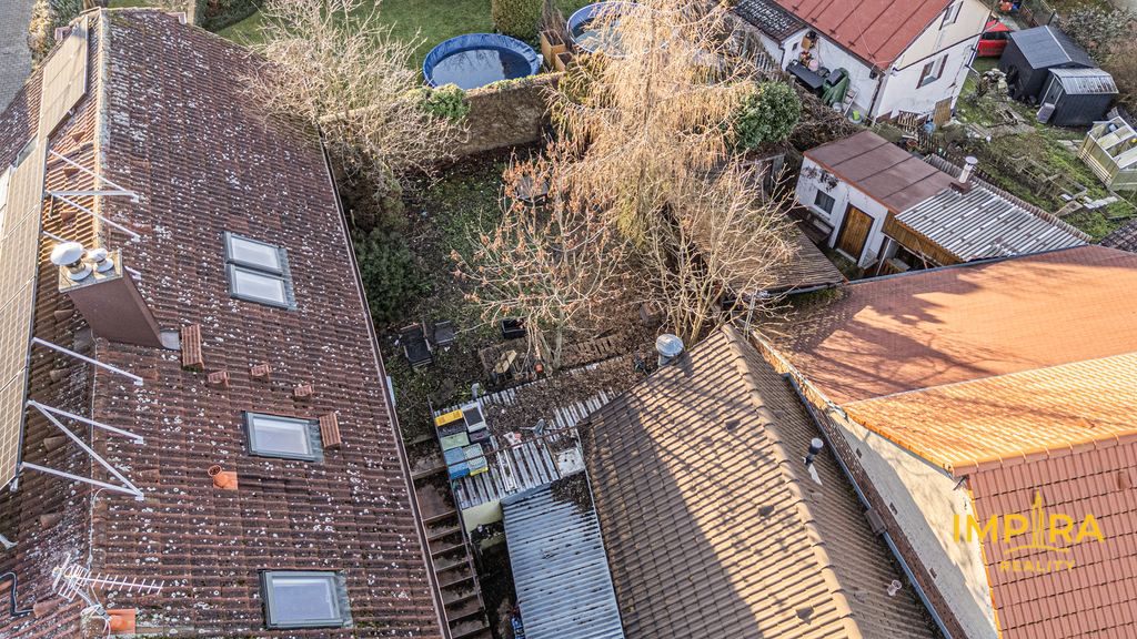 Zadní zahrada: malá, uzavřená zahrada s naprostým soukromím, ideální pro relaxaci, dětské hřiště nebo soukromé venkovní aktivity.
