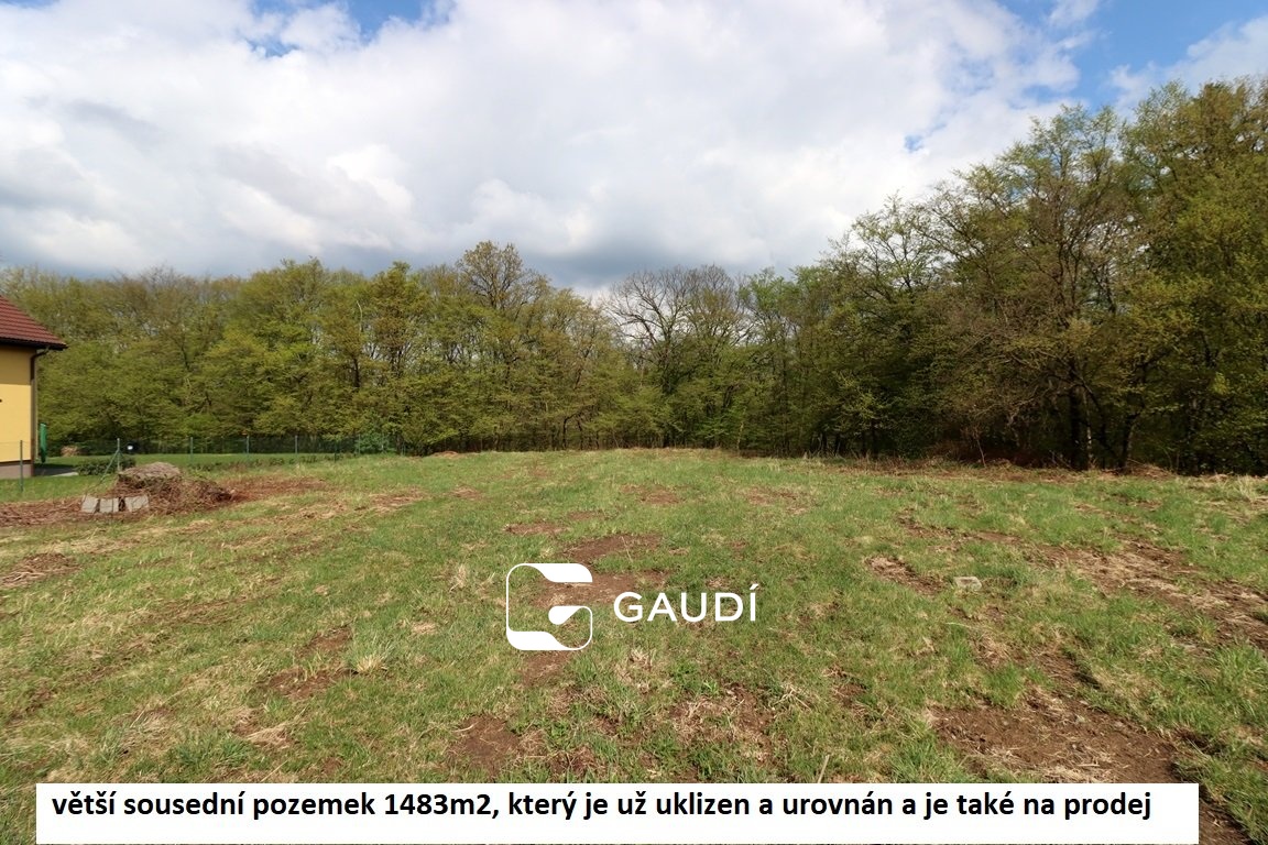 Jedná se o slunný rovinatý obdélníkový pozemek o rozměrech cca 20 x 56m, který kratší stranou sousedí s lesem. Dá se tak snadněji umístit dům na pozemku – požadováno bude cca 20m od lesa, podobně jako v sousedství. Dům může mít výhled velkými okny do lesa.