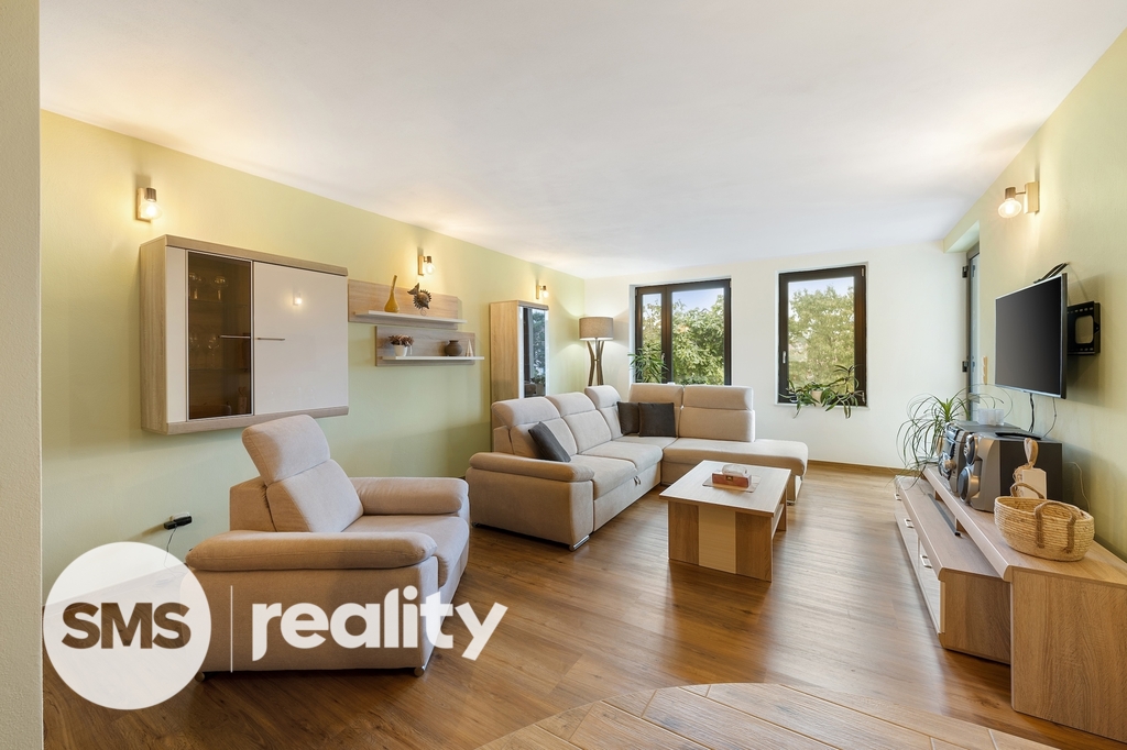 1. NP: vstupní zádveří, hala, obývací pokoj s kuchyňským koutem včetně značkových spotřebičů BOSCH, tři samostatné pokoje a nová luxusní koupelna s toaletou a sprchovým koutem typu walk-in.