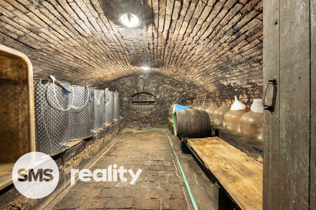 Součástí prodeje je také samostatně stojící historický vinný sklep s lisovnou o zastavěné ploše 126 m², vhodný k využití pro výrobu i skladování vína nebo ke komerčnímu využití.