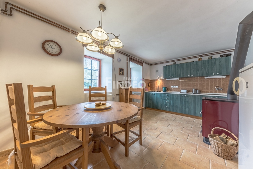Dům prošel kompletní rekonstrukcí, takže vás nečekají žádné zásadní investice. Vytápění zajišťuje tepelné čerpadlo, příjemnou atmosféru pak doplňují krbová kamna v kuchyni i obývacím pokoji. Samozřejmostí jsou dvě koupelny – v přízemí i patře. Ohřev TUV zajišťují dva bojlery – každá koupelna má vlastní.