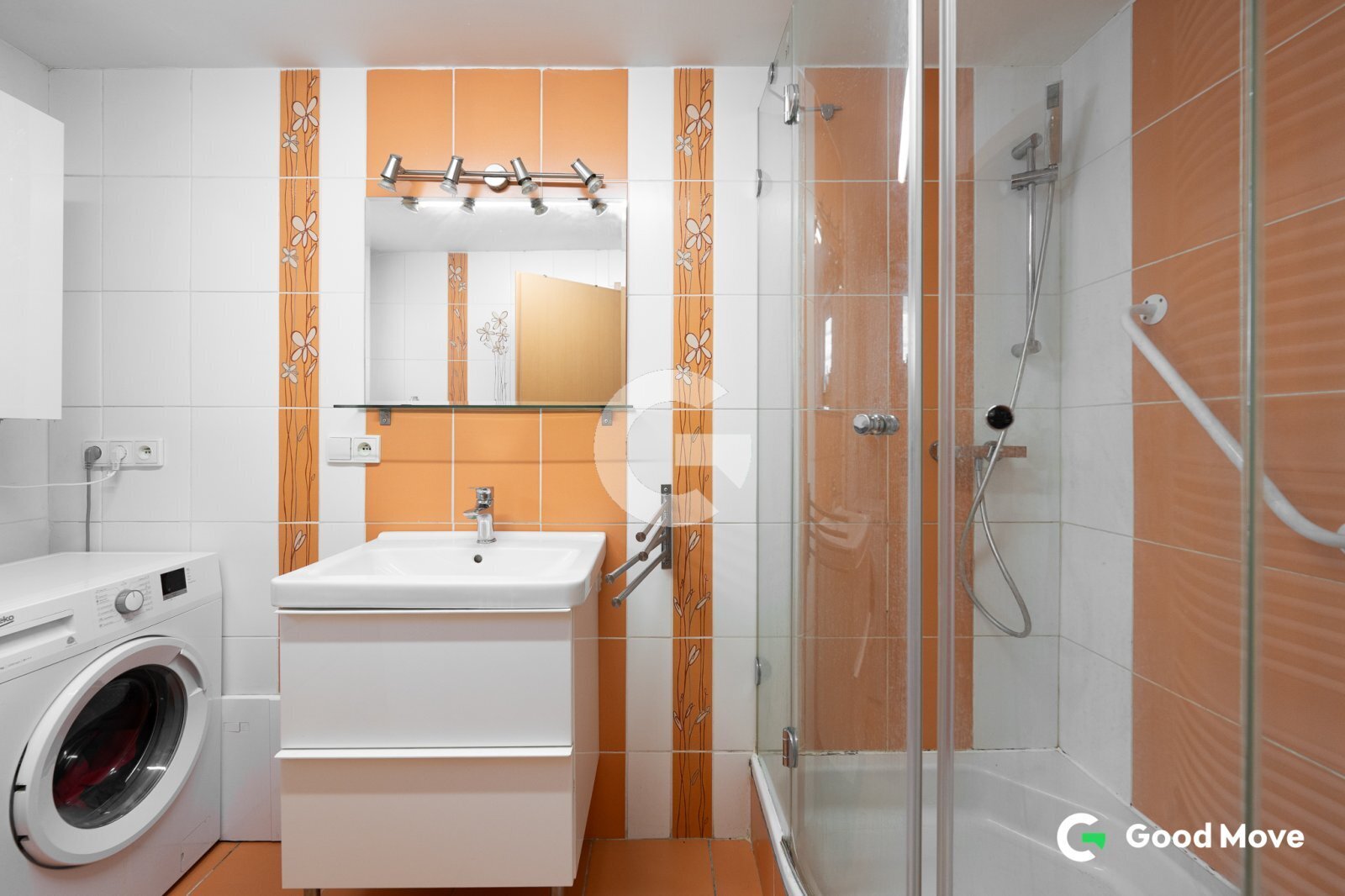 V interiéru najdete kombinaci plovoucích podlah a keramických dlažeb, které spojují moderní vzhled s dlouhou životností.
