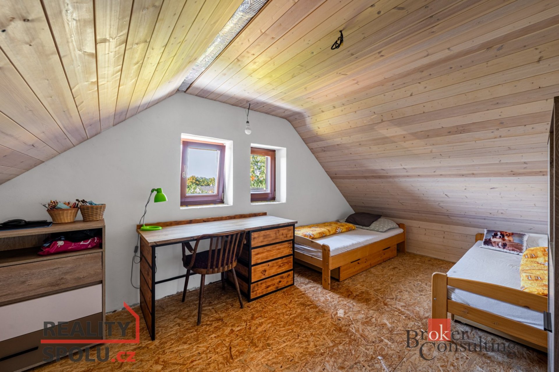Dům má dispozici 3+kk – útulný a tak akorát. Částečně zrekonstruovaný, s podlahovým topením v přízemí, díky kterému je tu i v zimě příjemně teplo. Všude plastová okna, takže ani vítr si sem nenajde cestu. A když se večer ochladí, stačí přiložit do krbu, a jen tak poslouchat, jak dřevo tiše praská. Tenhle dům má totiž hřejivou atmosféru, která se těžko popisuje – ale snadno se cítí.