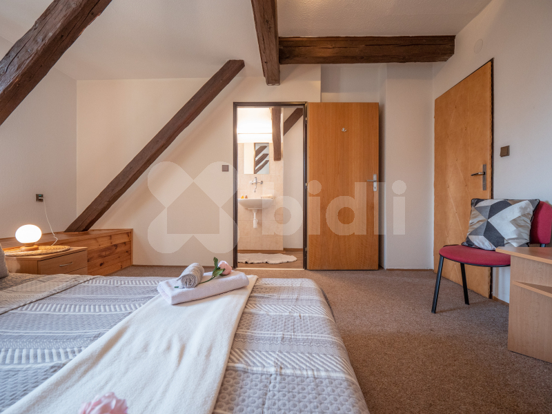 Plně vybavený penzion se stylovou restaurací, kuchyní, barem a letní terasou s grilem. Devět útulných pokojů s vlastním sociálním zázemím a kapacitou 40 osob. Dvě kulečníkové herny, salonek a služební byt. V suterénu stylový historický vinný sklípek i wellness. U vchodu prostorné parkoviště i kryté stání. Do domu je zavedena elektřina, plyn, veřejný vodovod a veřejná kanalizace. Komfort ústředním vytápěním zajišťuje moderní kotelna na plyn i dřevo.