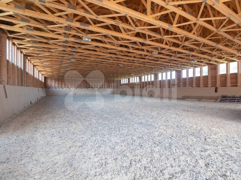 Impozantní budova nové kryté haly 855 m2, je využívána jako jízdárna a také pro rekreační sporty.