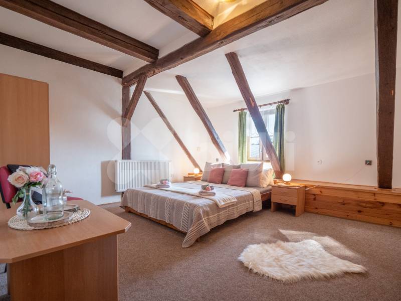 Plně vybavený penzion se stylovou restaurací, kuchyní, barem a letní terasou s grilem. Devět útulných pokojů s vlastním sociálním zázemím a kapacitou 40 osob. Dvě kulečníkové herny, salonek a služební byt. V suterénu stylový historický vinný sklípek i wellness. U vchodu prostorné parkoviště i kryté stání. Do domu je zavedena elektřina, plyn, veřejný vodovod a veřejná kanalizace. Komfort ústředním vytápěním zajišťuje moderní kotelna na plyn i dřevo.