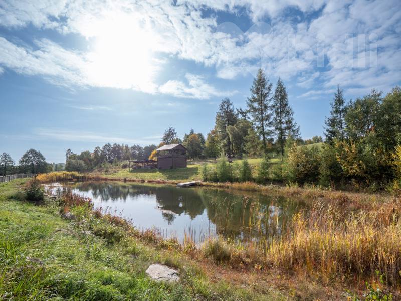 Na pozemku je k dispozici venkovní jízdárna, oplocená obora s hodnotnými stromy, dančí zvěří a tůň s napajedlem. Atmosféru dokresluje vlastní rybník 1500 m2 s dřevěnou rozhlednou, vybudovaný s dokonale vyváženou skladbou použitých rostlin a kamenných obkladů. Úžasný výhled do půvabného okolí si můžete užívat v naprostém soukromí.
