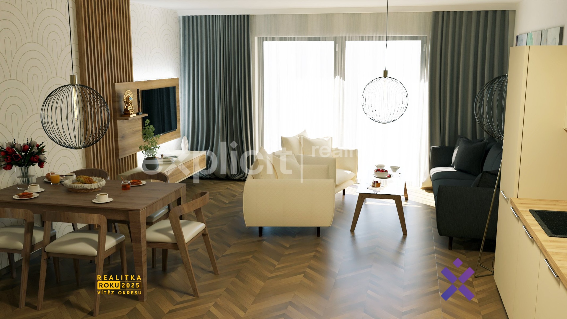 - kuchyňská linka není součástí dodávky – byt si tak můžete dokončit podle vlastních představ