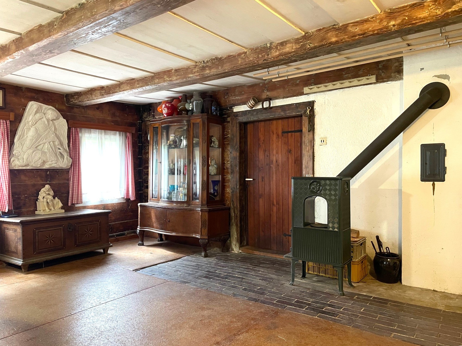 Dispozice: 1. NP - světnice, kuchyň, chodba, koupelna, dílna, chlév a suchý záchod. 2. NP - 2 pokoje a chodba. Nemovitost disponuje malým klenutým sklepem, půdou a navazující celodřevěnou stodolou. Objekt je napojen na obecní vodovod, elektřinu 230/400 V a je zde přípojka plynu.