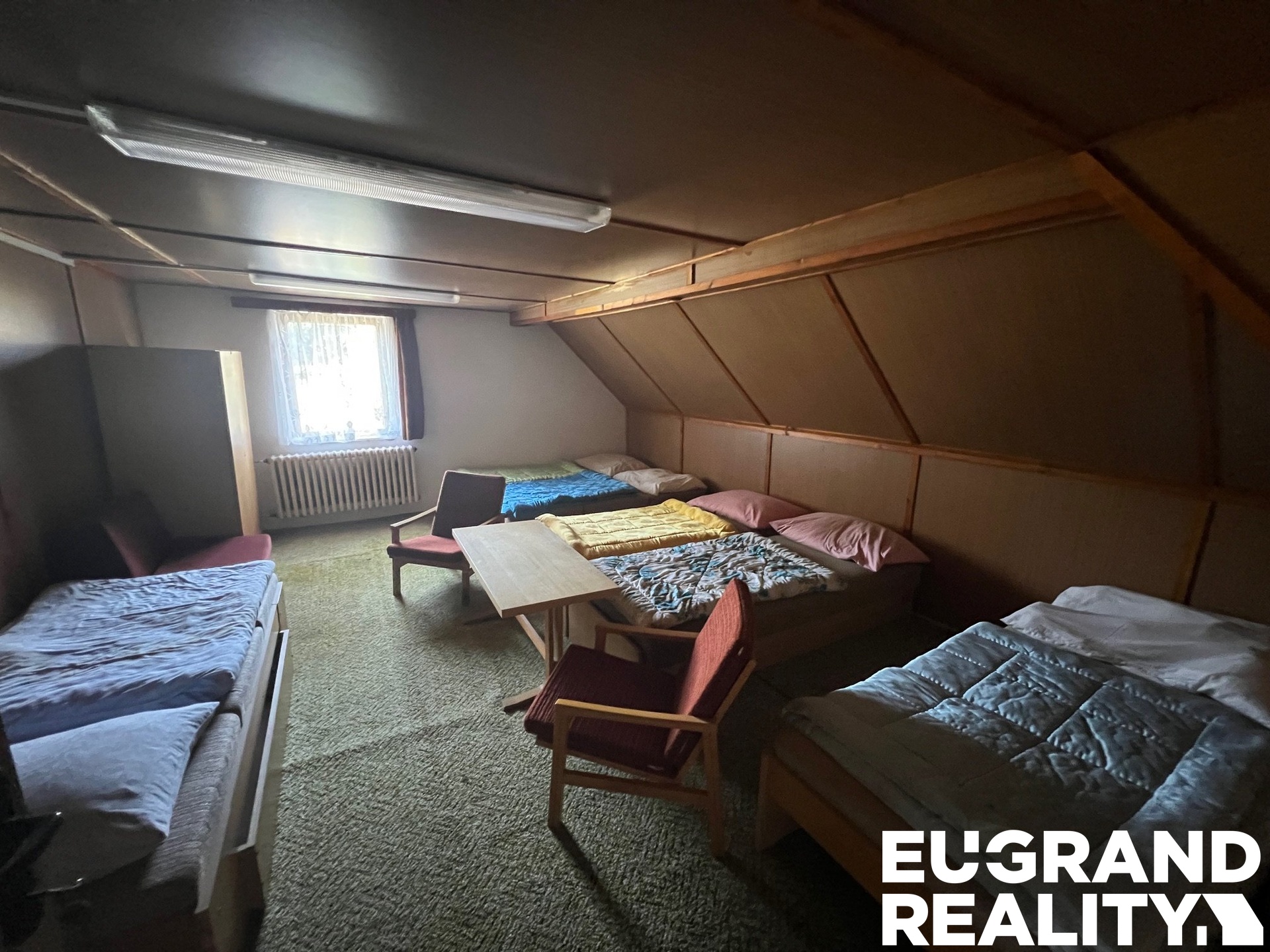 Naše společnost Vám v exkluzivním zastoupení nabízí prodej rodinného domu v centru obce Dolním Podluží. Tato nemovitost dříve složila jako rekreační objekt pro soustředění a odpočinek převážně dětí. Hlavním vstupem se dostaneme do přízemí nemovitosti, kde se nachází velká obývací místnost s kapacitou 35 osob. V této místnosti se nachází funkční krb, který slouží jako alternativní vytápění této místnosti. Dále se v přízemí nachází kuchyně, sklad, samostatné panské a dámské toalety se sprchami, kotelna, zadní vchod na zahradu. Do prvního patra se dostaneme po dřevěných schodech, kde se nachází sedm obytných místností, sociální zázemí s WC a sprchy. Do druhého patra vedou také dřevěné schody a v tomto patře se nachází čtyři obytné místnosti s 26 lůžky. Topení v této budově je řešeno elektrickým vytápěním. Kanalizace a voda je řešena z městského řádu.