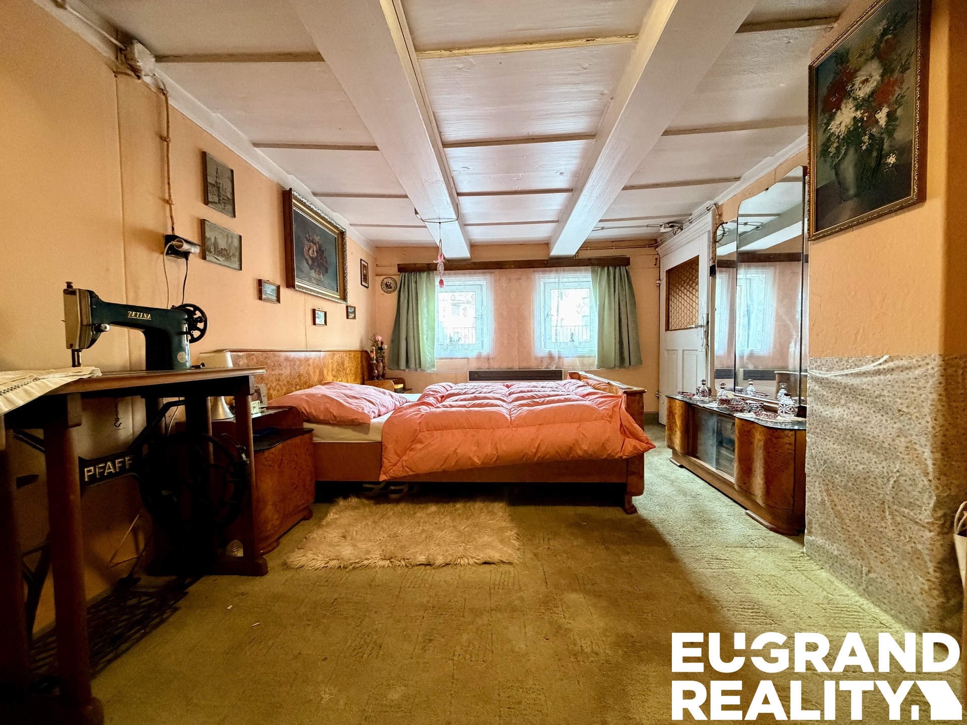v podkroví dvě samostatné místnosti vhodné jako ložnice, dětské pokoje či pracovna