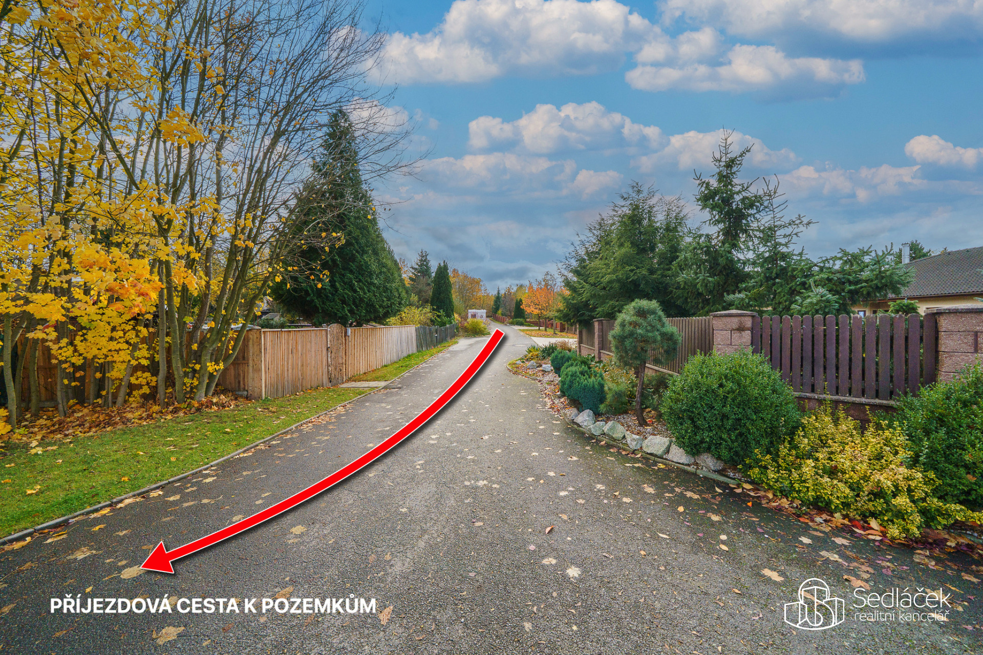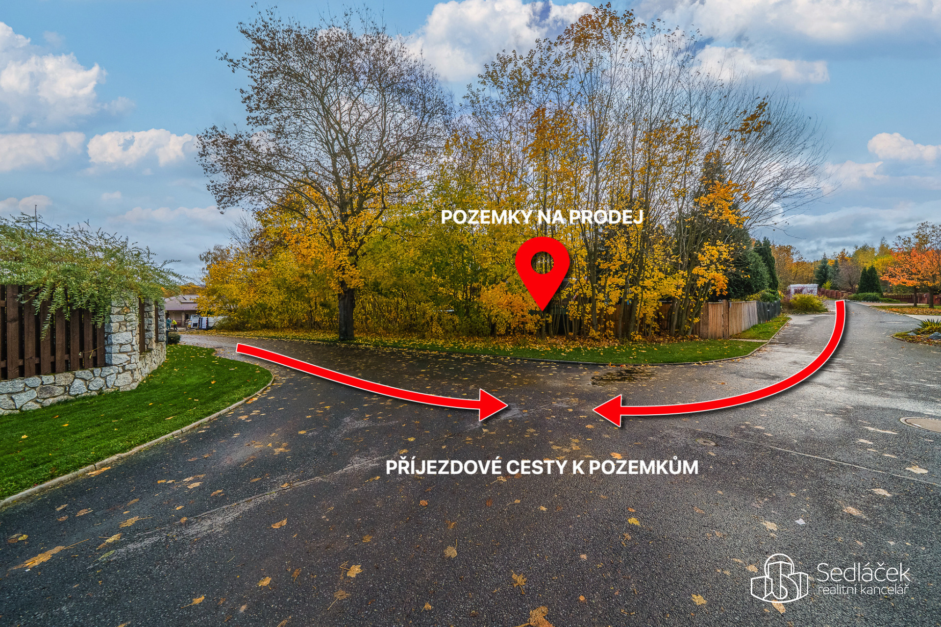 Přístup na pozemky je zajištěn přímo z asfaltové komunikace.