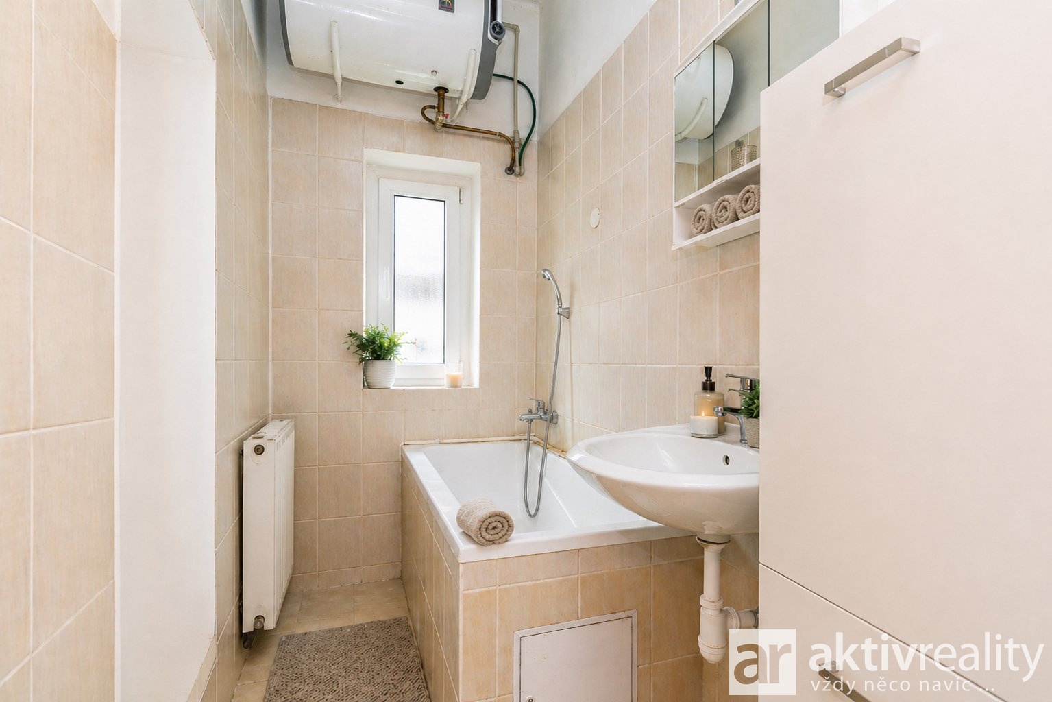 - Ohřev vody je zajištěn samostatně – každý byt má vlastní elektrický bojler.