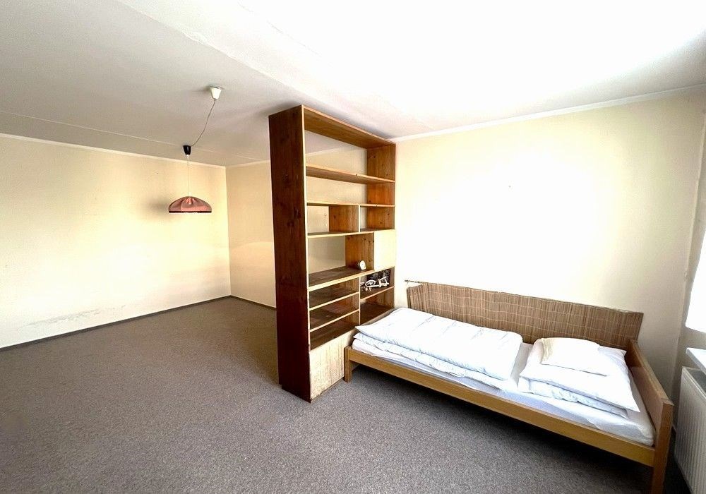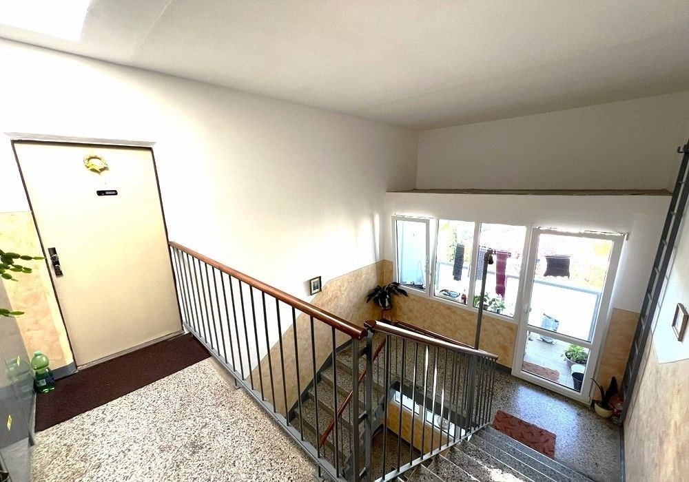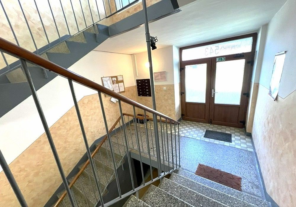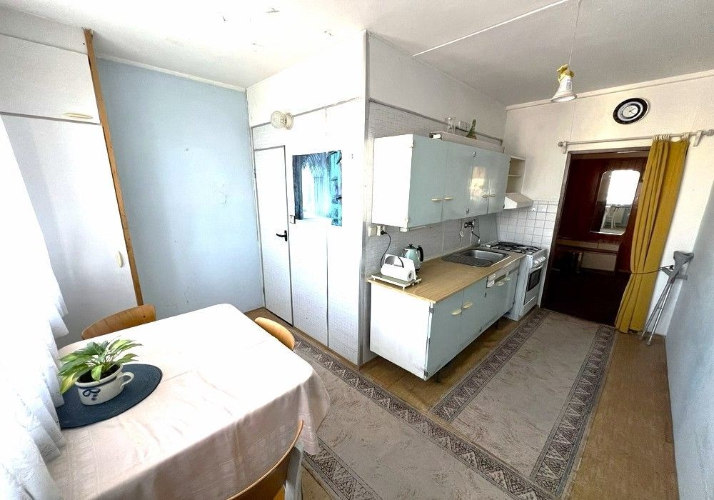 Byt o dispozici 2+1 (2x místnost + kuchyně) s lodžií, příslušenstvím a provozním vybavením, situovaný ve 4.NP (3. patro) bytového domu v klidné, okrajové části města. Byt s původním provozním vybavením o celkové výměře užitné plochy 65 m2 s externím příslušenstvím (sklep) + lodžie cca 5,5 m2 v bytovém domu postaveném v roce 1975 s celkem 12 ti bytovými jednotkami, bez výtahu s provozními prostorami a společným zázemím. K bytu náleží vlastní skladovací prostor (sklepní kóje), možnost užívání všech společných prostor v bytovém domu a užívání venkovního prostranství veřejné zeleně navazující na bytový dům. V letech 2012 až 2021 byla provedena kompletní výměna oken za plastová s izolačními skly, rekonstrukce lodžie, zateplení bytového domu s renovací střešního pláště objektu a provedena výměna společných rozvodů. Byt v původním technickém stavu je připraven k okamžitému předání a užívání ihned po převodu nemovitosti, vhodný k zahájení rekonstrukce prostor dle představ nového vlastníka, bez jakéhokoli omezení vlastnických práv. Orientace oken v bytu na jih a sever. Bytový dům, ve kterém se byt nachází je čtyřpodlažní objekt panelové konstrukce, na okraji řadové zástavby bytových domů s provedením kompletní renovace venkovní schránky objektu (fasáda, střecha, okna…), situován v obytné zástavbě s navazující veřejnou zelení, veřejnými parkovacími plochami v klidné okrajové části města. Třída ENB: „C“. Byt je využitelný k vlastnímu trvalému nebo nájemnímu bydlení v historickém městě Domažlice s dostupností kompletních služeb, občanskou vybaveností a kompletní infrastrukturou. Dispozice: vstup, předsíň, obytná místnost s lodžií, kuchyně, ložnice, koupelna (vana, umyvadlo), WC, šatna. Vybavení bytu: kuchyňská linka, sporák, koupelnové vybavení, zařizovací předměty, částečně nábytek, osvětlovací tělesa, rozvody TV / tel. / internet. Vytápění: dálkové centrální. Celková užitná plocha bytu s příslušenstvím: 64,80 m2 + 5,50 m2 lodžie.