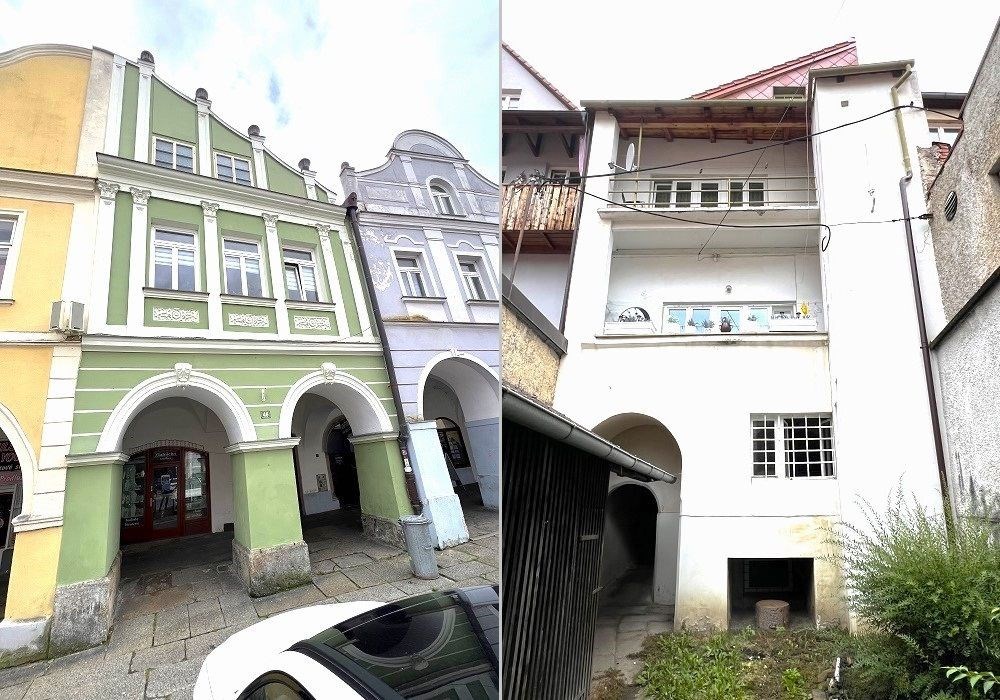Samostatný měšťanský dům na hlavním domažlickém náměstí s obchodními a bytovými prostorami ke komerčnímu pronájmu ve třech nadzemních podlažích s navazujícím pozemkem a vedlejší stavbou, sloužící jako polyfunkční objekt ke komerčnímu využití. Jedná se o zrekonstruovaný, třípodlažní, historický objekt bytového domu s přízemními komerčními prostorami s výlohami (obchod, prodej, služby), kancelářskými prostorami, příslušenstvím a kompletním provozním zázemím s modernizovaným vybavením, samostatnými byty (3x samostatné bytové prostory 3KK, 1+1 a 1KK) ve 2. a 3. NP, volnými půdními prostorami a historickými sklepními skladovacími prostorami. Jednotlivé prostory jsou dostupné centrální chodbou se schodištěm přes hlavní vstup z náměstí a historického podloubí městského centra. K zásobování prostor objektu je využíván vlastní centrální vstup s původním průjezdem přes celý objekt, který navazuje v zadní části objektu na vlastní nezastavěnou část stavebního pozemku uzavřený dvorek se zpevněnou plochou (klidová zóna s manipulační plochou) s vedlejší stavbou ke skladování (původní stáj) k případné rekonstrukci a samostatnému komerčnímu využití. Objekt prošel naposledy v průběhu let 19952024 kompletní rekonstrukcí (výměna střešní konstrukce s krytinou, výměna oken, kompletní výměna všech rozvodů a instalací, modernizace vnitřních prostor, částečná renovace bytů, kompletní rekonstrukce obchodních prostor, sanace sklepních prostor vč. zbudování nových přípojek na inženýrské sítě…). Třída ENB „G“. Nabízené nemovitosti jsou jako jeden funkční celek komplet užívány ke vlastnímu komerčnímu provozu a pronájmu, připraveny k okamžitému převodu a následnému předání bez jakýchkoli omezení vlastnických práv. Lokace nemovitostí v historické zástavbě řadových měšťanských domů s podloubím v nejatraktivnější části města hlavního náměstí v centru okresního města Domažlice s kompletními službami a infrastrukturou. Nabídka nemovitostí je zajímavou investicí do objektu historického bytového domu v atraktivní lokalitě historického centra města k realizaci individuálního podnikatelského záměru dle představ nového vlastníka se zajištěnými budoucími výnosy z pronájmu jednotlivých prostor. Přístup: 2x z veřejného prostranství historického náměstí (podloubí), elektřina (220/380V), napojeno na veřejný zdroj vodyvodovod, veřejnou splaškovou kanalizaci a telekomunikační rozvody. Bez napojení na rozvod plynu. Topení lokální elektrické v jednotlivých prostorách objektu. Celková užitná plocha: cca 370 m2 + příslušenství I Zastavěná plocha: 269 m2 I Plocha st. pozemku celkem: 328 m2.