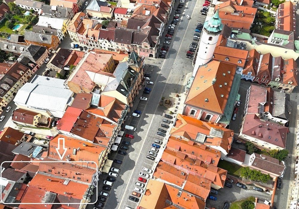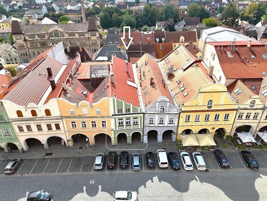 Historický měšťanský dům ke komerčnímu využití na náměstí v Domažlicích.