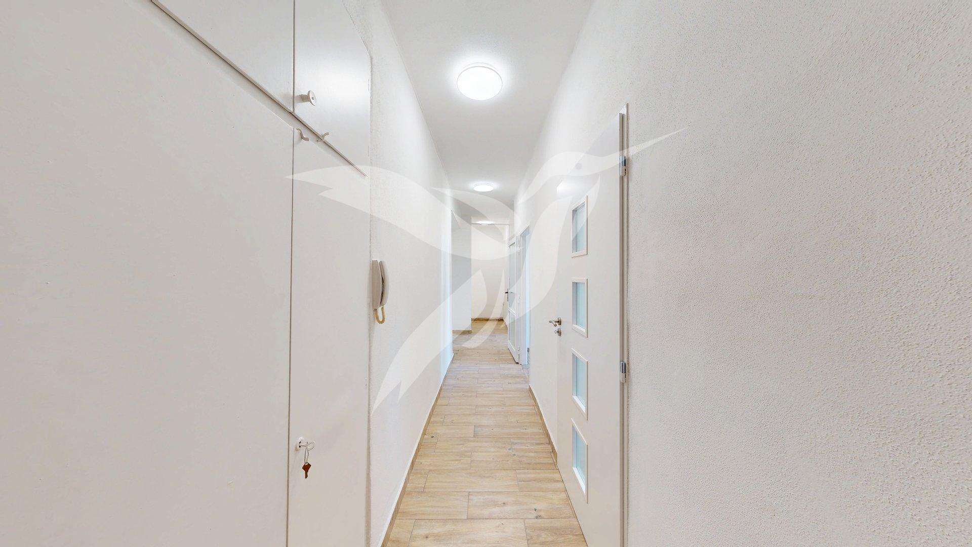 Nemovitost o velikosti 57 m2 se nachází v 1. NP cihlového domu bez výtahu a skládá se z předsíně se šatním prostorem, pokoje včetně kuchyňské linky, 2x samostatného pokoje, koupelny s toaletou a k bytu náleží i sklep situován v suterénu bytového domu. Bytová jednotka se pronajímá jako nezařízená a její součásti je kuchyňská linka se spotřebiči (varná deska + digestoř, elektrická vestavěná trouba), dále skříň v předsíni. Vytápění bytu je zajištěno elektrickým kotlem a ohřev vody elektrickým bojlerem. Předností je skvělá lokalita v klidné části Domažlic s občanskou vybaveností i dostupnosti MHD - v docházkové vzdálenosti školka, obchod, dětské i sportovní hřiště.