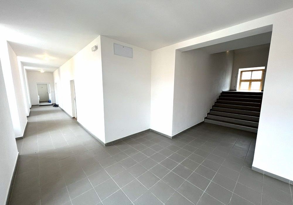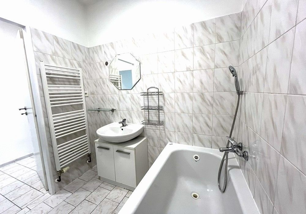 Zrekonstruovaný byt o dispozici 2KK (obytná místnost s kuchyňským koutem, ložnice + příslušenství) s kompletním provozním zařízením a částečným vybavením nábytkem o celkové výměře užitné podlahové plochy 53 m2. Bytová jednotka je situována ve II. N.P. (1. patro) objektu bytového domu se společným provozním zázemím a společnými prostorami. Byt byl nově zbudován, provozně vybaven a zařízen v roce 2010, nyní připraven k okamžitému předání a užívání od termínu 04/2026. Orientace obytných prostor na jih (světlý slunný prostor). Bytová jednotka je situována v 1. patře třípodlažní budovy bez výtahu, v zastavěné části města s dostupností kompletních služeb, veškerou infrastrukturou a dobrou dopravní dostupností. Třída ENB: „G“ průkaz nezpracován. Byt je využitelný k trvalému či přechodnému bydlení pro max. 2 osoby s možností okamžitého nastěhování a bydlení. K bytu náleží možnost užívání vlastní skladovací sklepní kóje, společné skladovací místnosti v přízemí objektu, užívání veškerých společných přístupových prostor a společné užívání venkovního klidového prostranství a zázemí u bytového domu s možností parkování osobního automobilu ihned u bytového domu s individuálním vjezdem a přístupovým prostranstvím. Dispozice bytu: vstup, chodba (předsíň), obytná místnost s kuchyňským koutem, ložnice, koupelna (vana, umyvadlo), WC, provozní technický prostor. Vybavení bytu: kompletní kuchyňská linka s dřezem, kuchyňský sporák, odsavač par, mikrovlnná trouba, pračka, komplet. koupelnové vybavení, osvětlovací tělesa, zařizovací předměty, tel. + TV rozvody, internet. Vytápění: vlastní plynové etážové (plyn. kotel pouze pro byt) otop + ohřev vody. Celková užitná plocha bytu: 53 m2 / obytná podlahová plocha cca 47 m2. Výše nájemného: 11.000, Kč / měsíčně + cca od 3.500, Kč (provozní energie a služby).