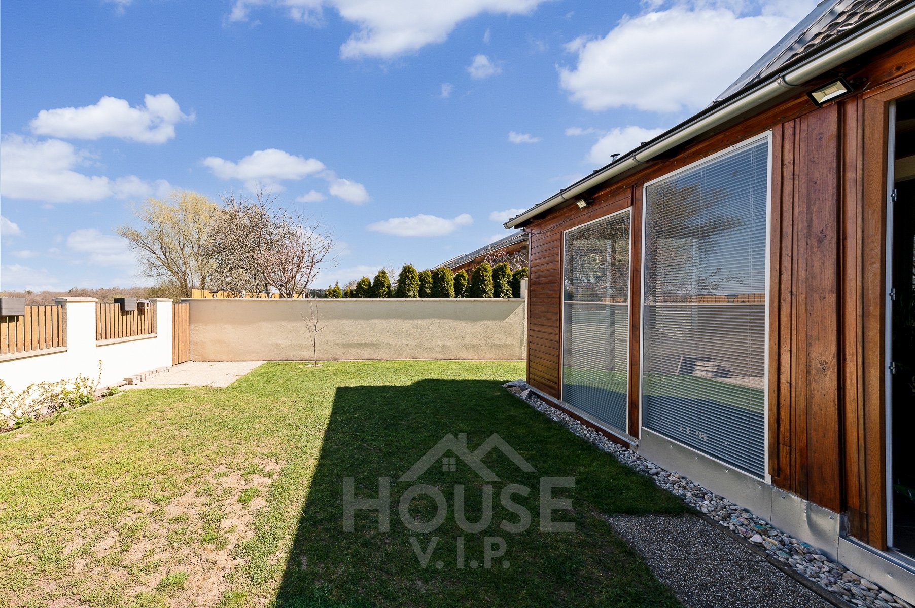 K domu náleží garáž pro dvě auta, zahradní domek a příjemná zahrada, která poskytuje dostatek soukromí i prostoru pro odpočinek či volnočasové aktivity.