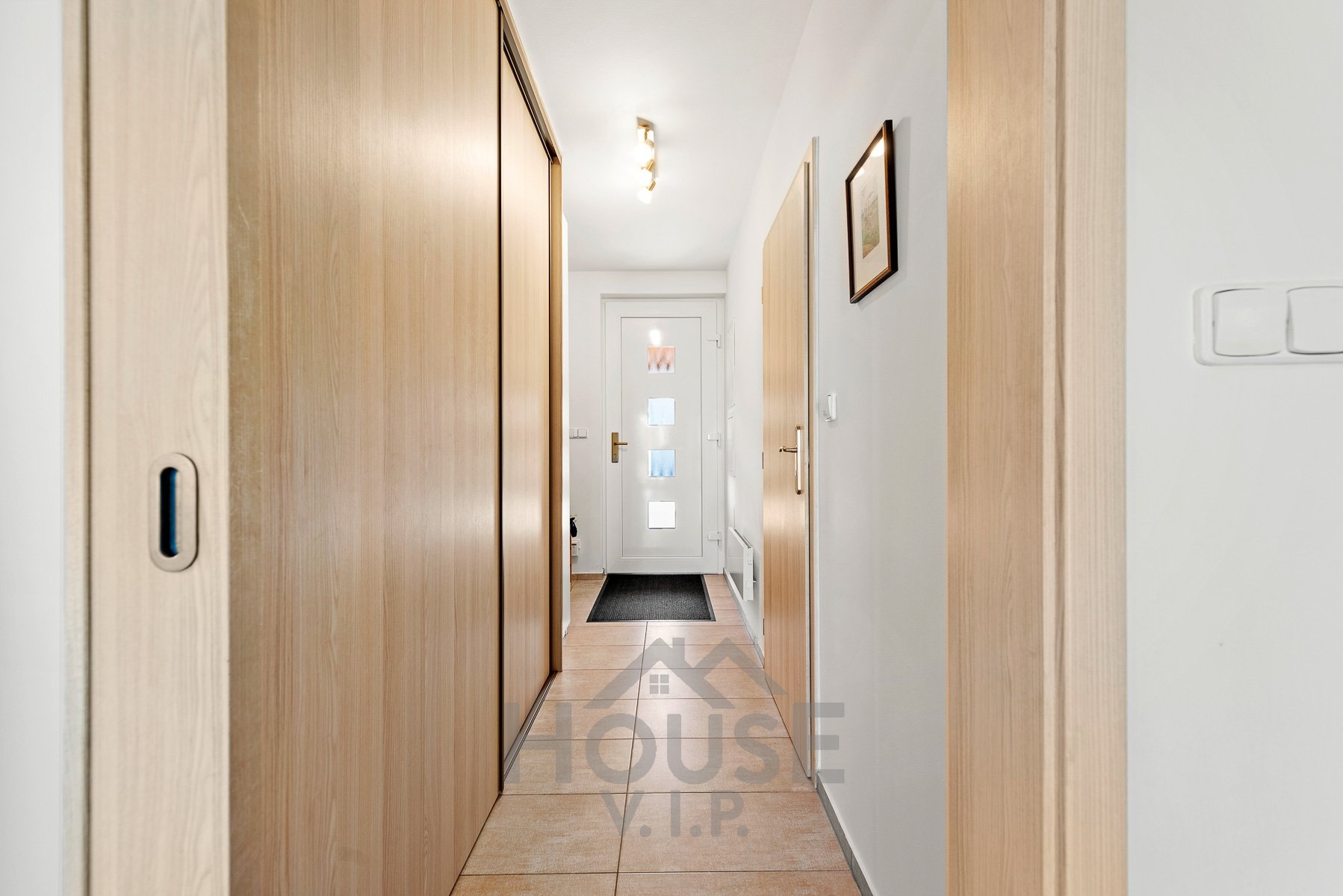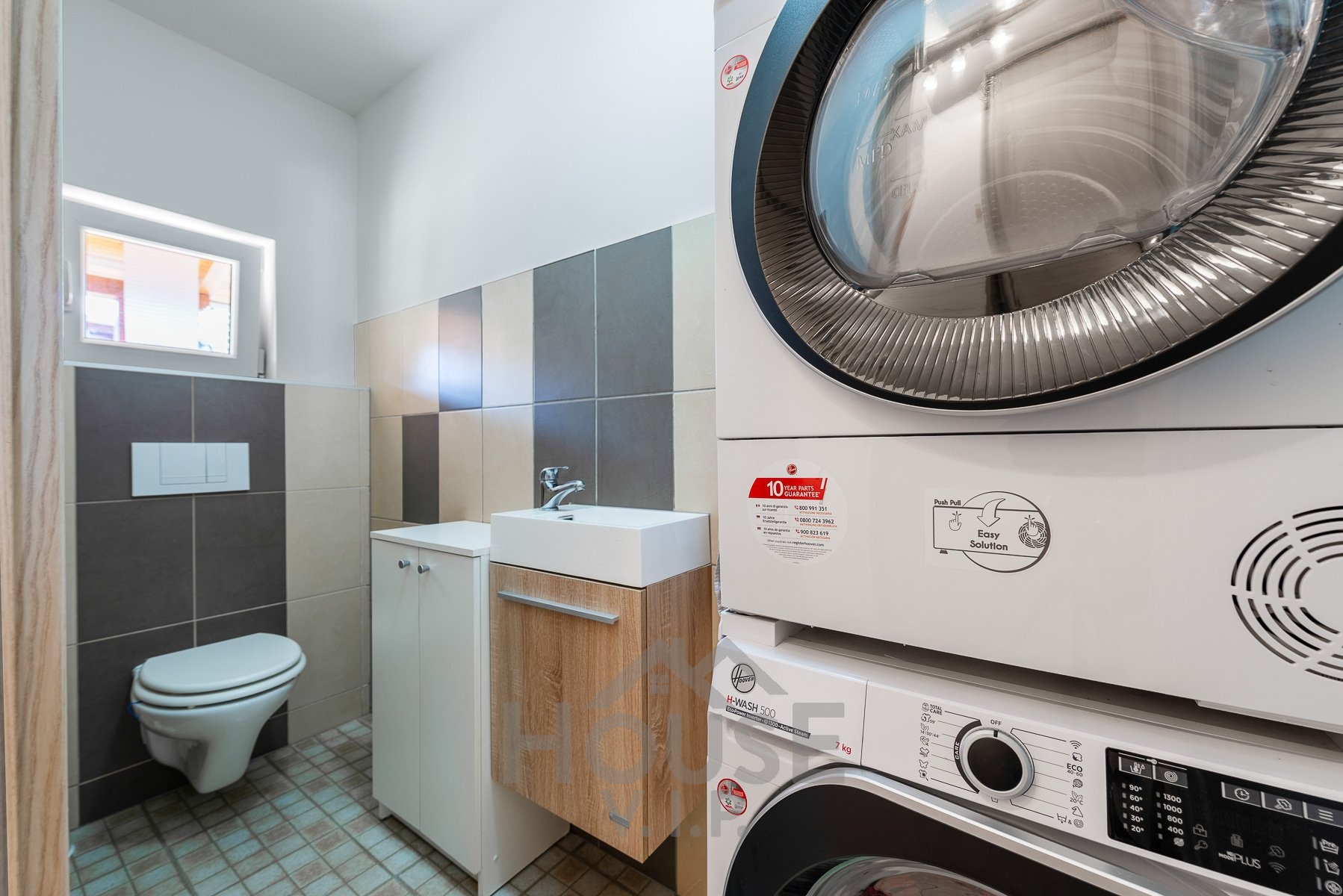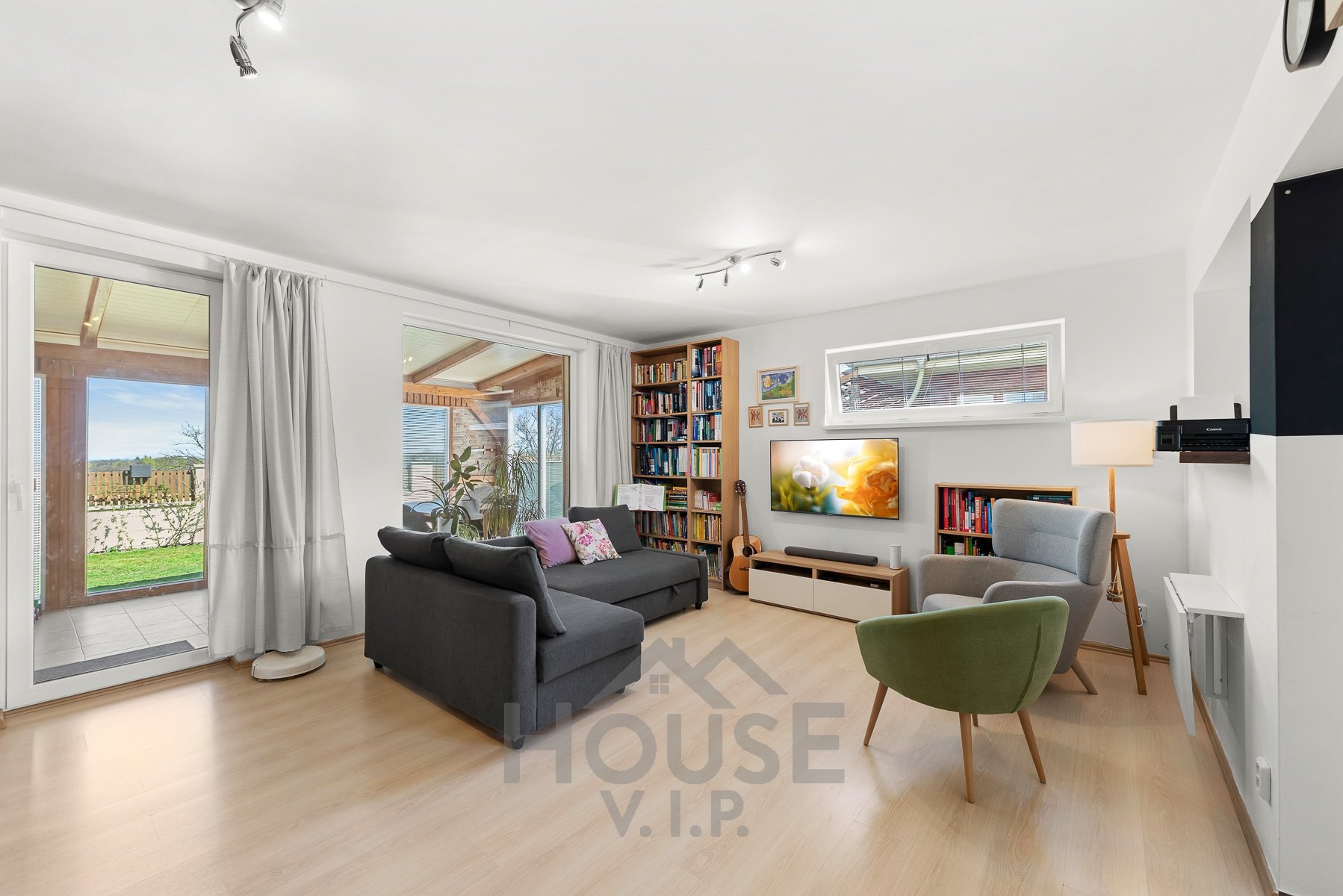 V přízemí se nachází obytná část s podlahovým vytápěním, které zajišťuje příjemné teplo a pohodlí během celého roku. Součástí domu je také zimní zahrada (17 m2) s přímým vstupem na zahradu, která poskytuje ideální místo pro relaxaci i posezení s rodinou či přáteli.