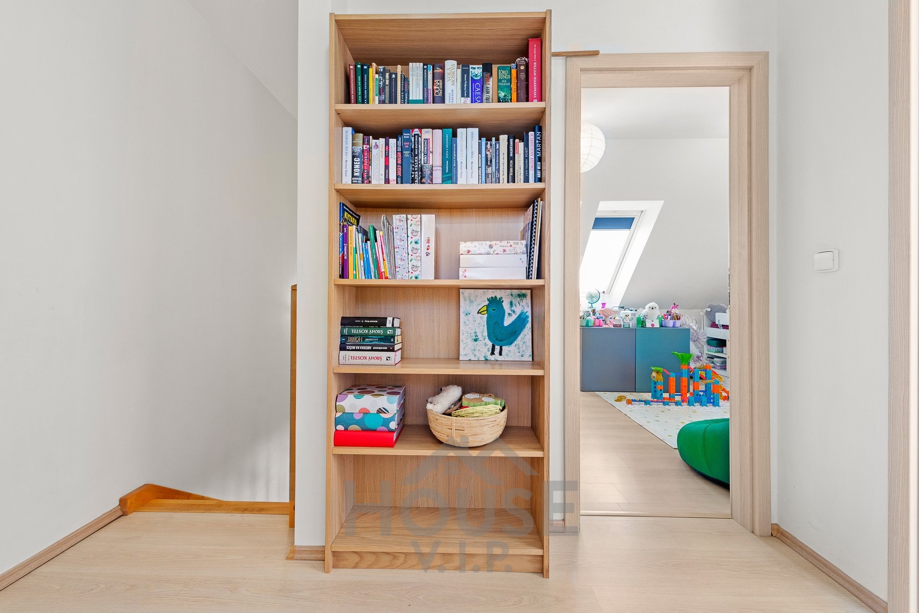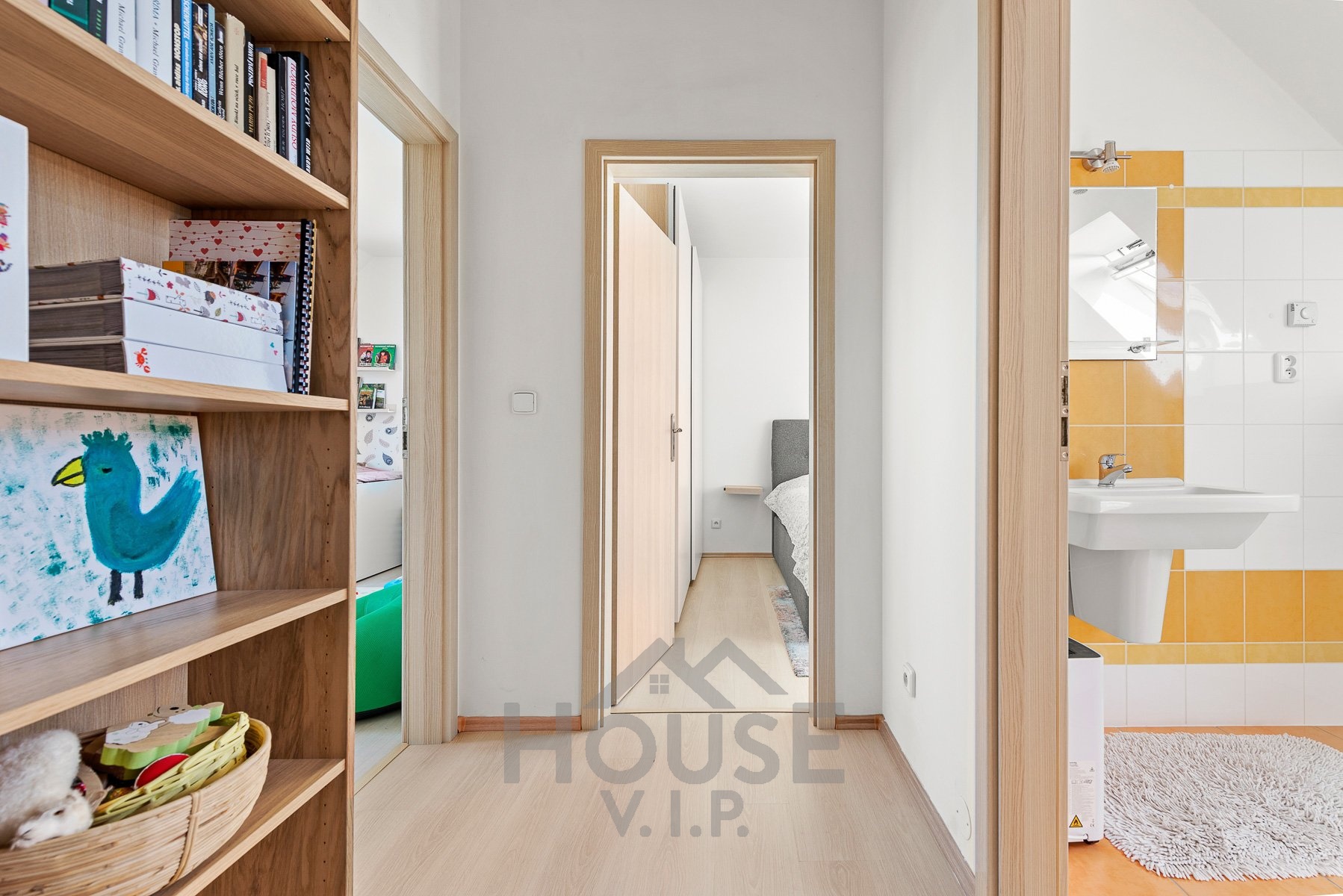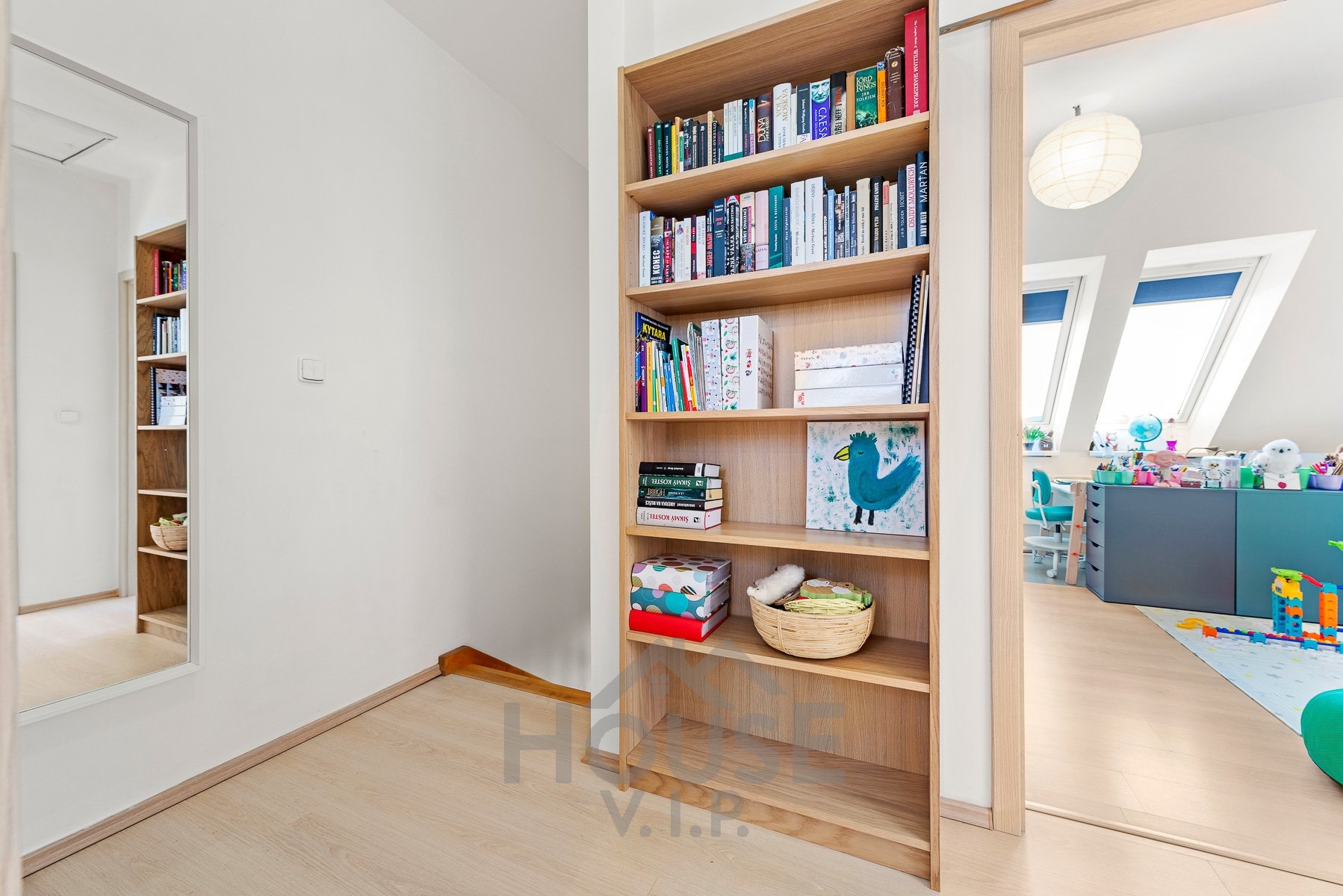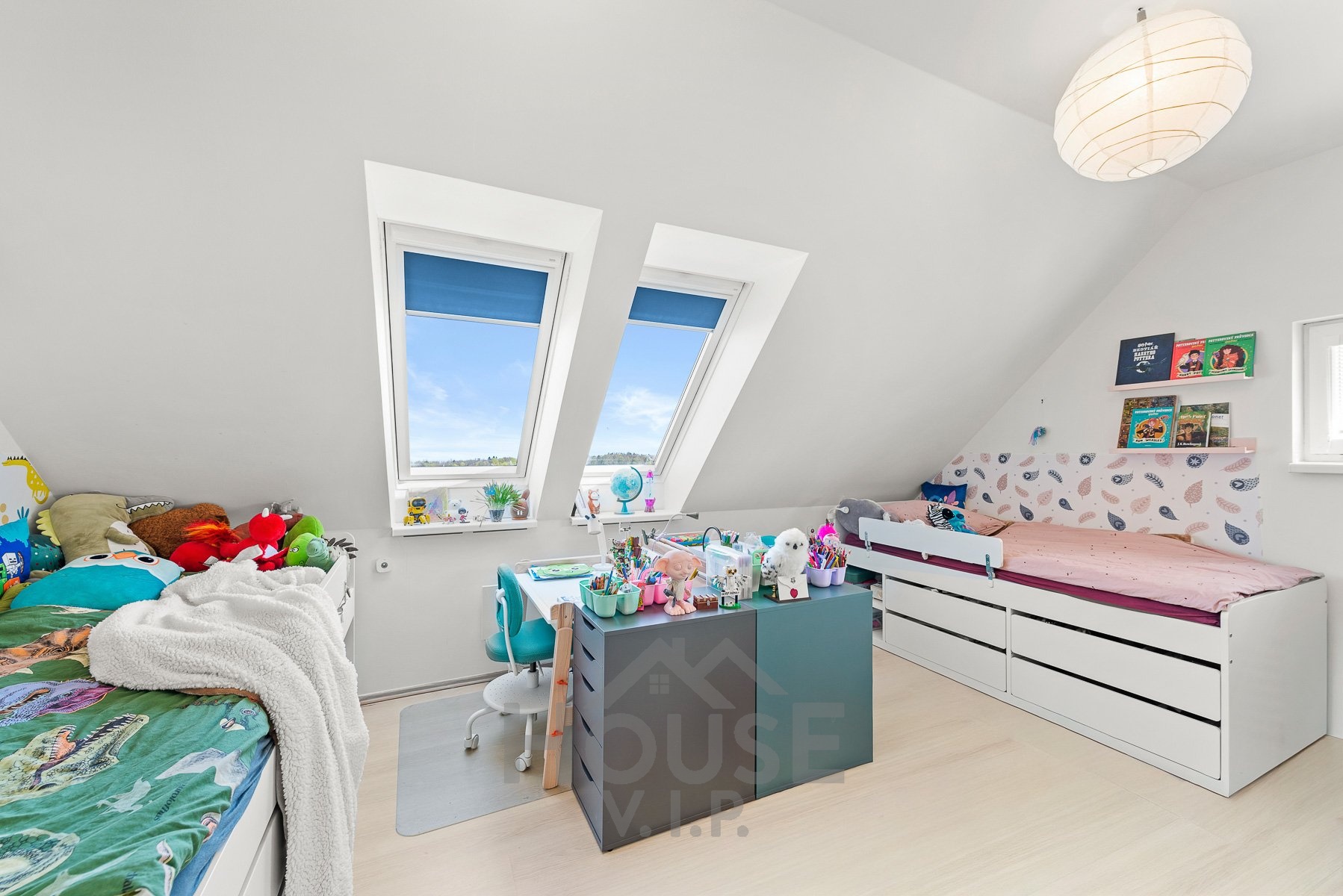 V patře jsou pokoje vybaveny radiátory, přičemž koupelna disponuje kombinací podlahového vytápění pro vyšší komfort. Velkou výhodou nemovitosti je možnost dalšího rozšíření – na půdě lze vybudovat další obytný pokoj a obdobný potenciál nabízí i zimní zahrada, ze které lze vytvořit plnohodnotný pokoj.