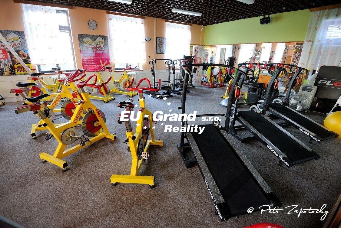 • Klubovna a cvičební sál: V 1. patře jsou dvě prostorné místnosti (každá o rozloze 100 m²), jedna slouží jako klubovna, druhá jako moderně vybavený cvičební sál s 20 ks spinning kol, běžícími pásy, bosu a TRX. Další malá posilovna je v suterénu.