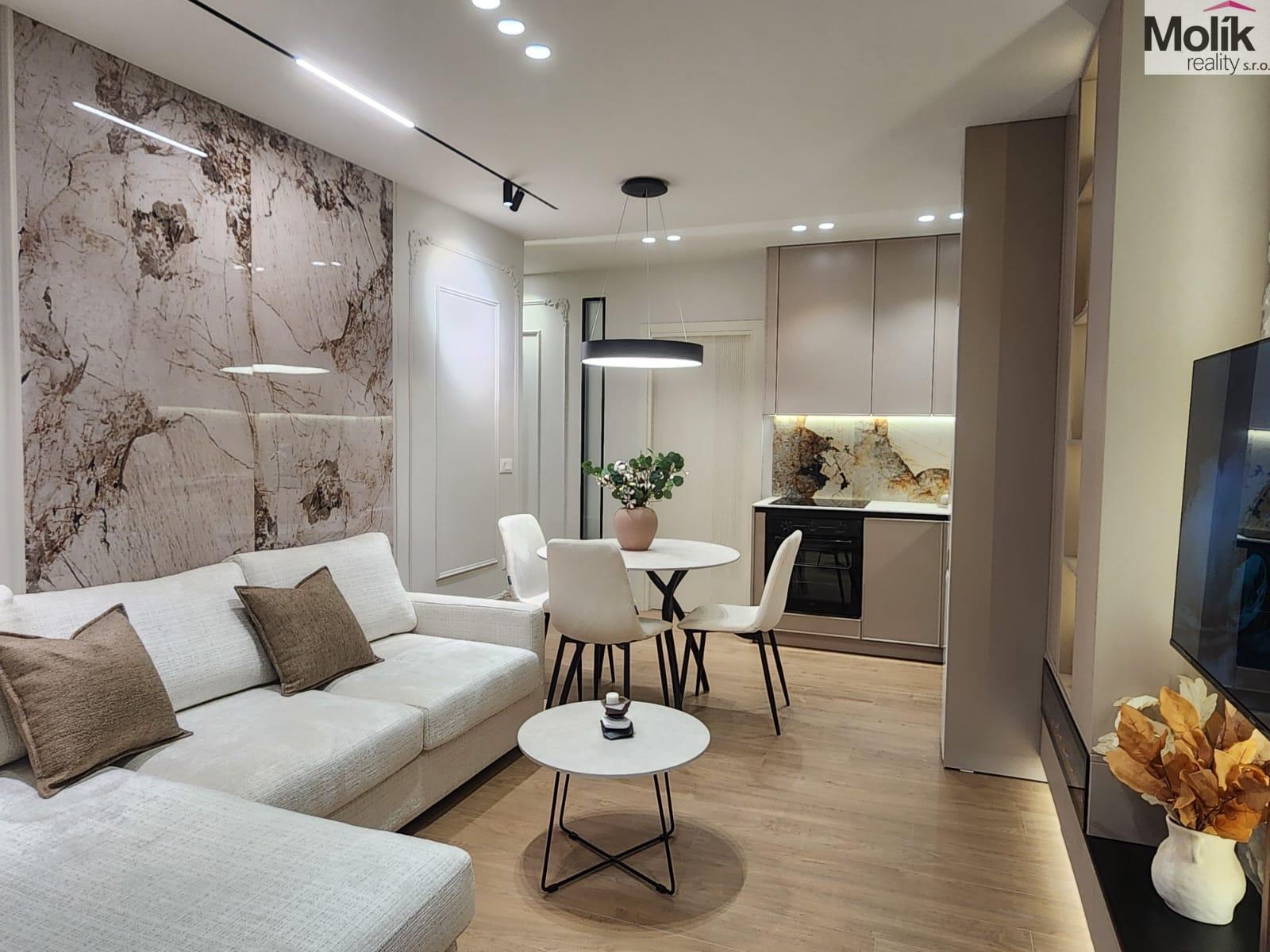 Moderní design: Byt prošel precizní a vkusnou rekonstrukcí s použitím kvalitních materiálů. Vše je nové od podlah po strop.