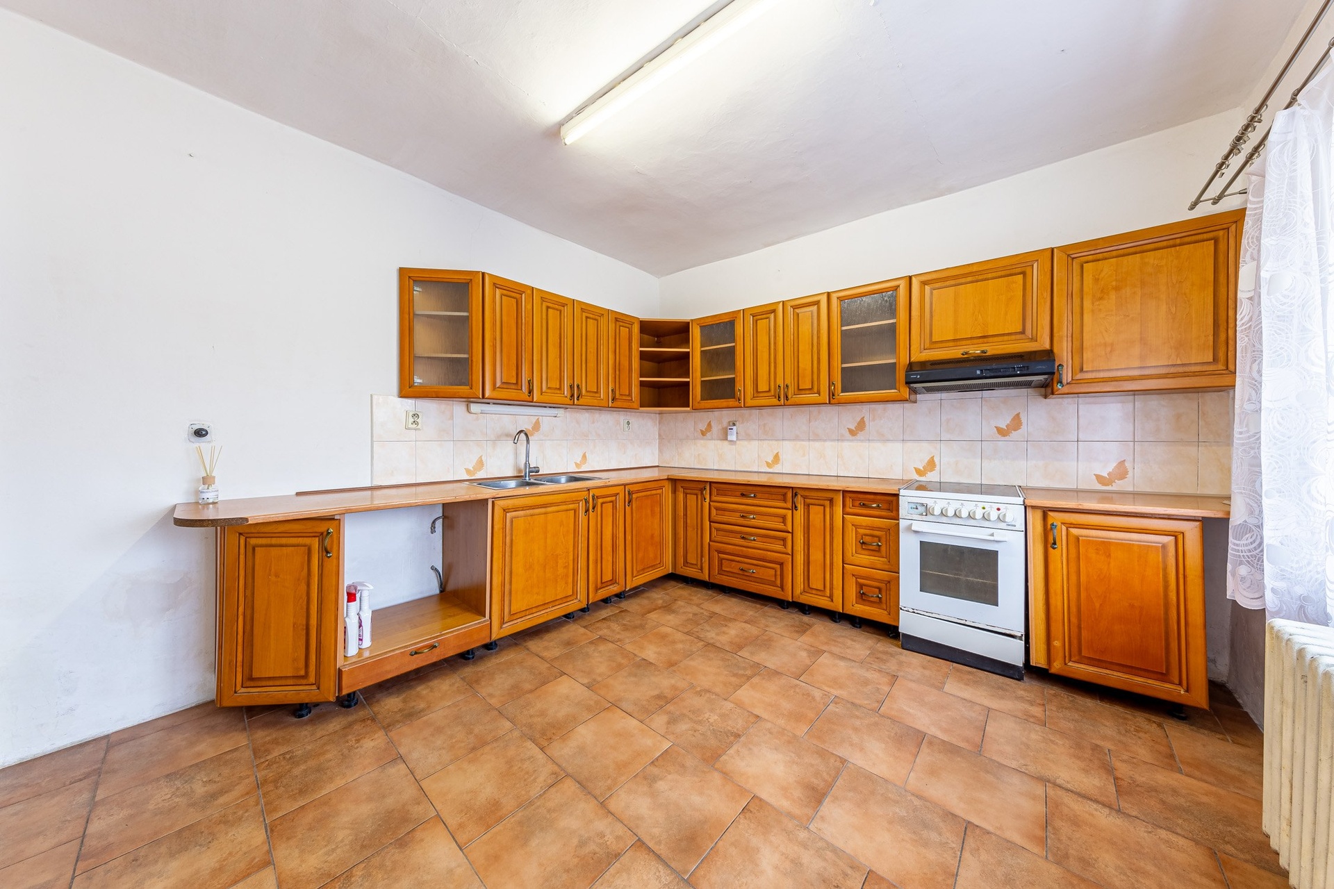Kuchyňská linka včetně spotřebičů (horkovzdušná trouba včetně sklokeramické desky, digestoř).