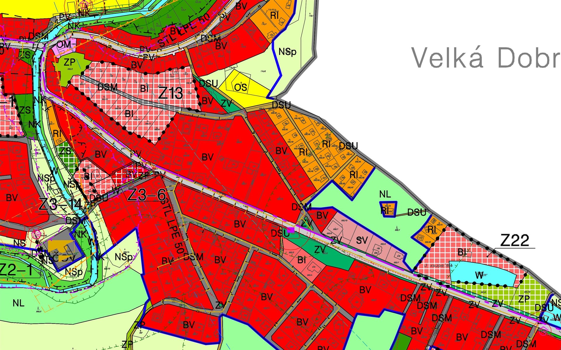 Pozemek je podle územního plánu určen pro venkovské bydlení v rodinných domech, zároveň však umožňuje také podnikatelské využití v podobě nevýrobních služeb.