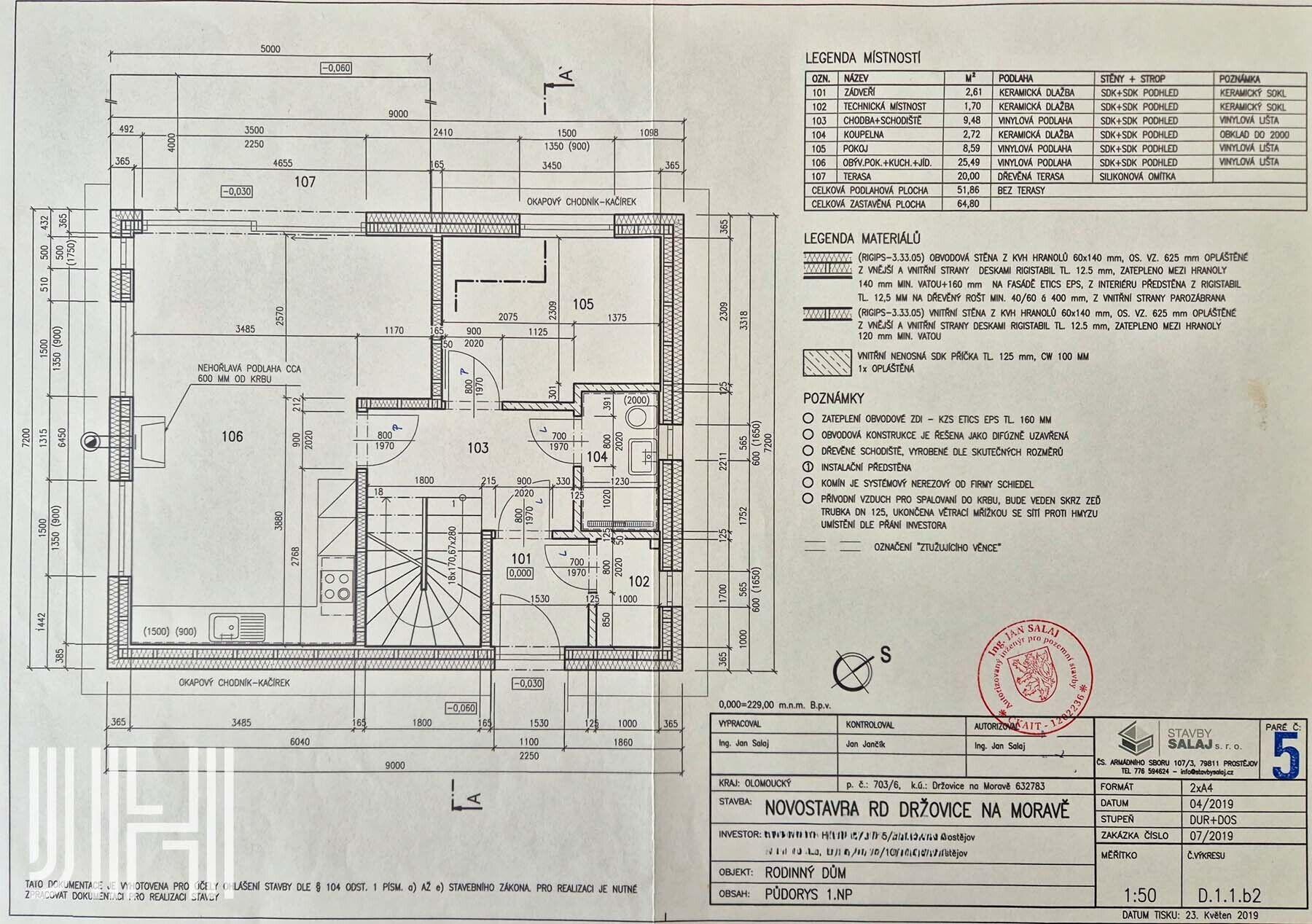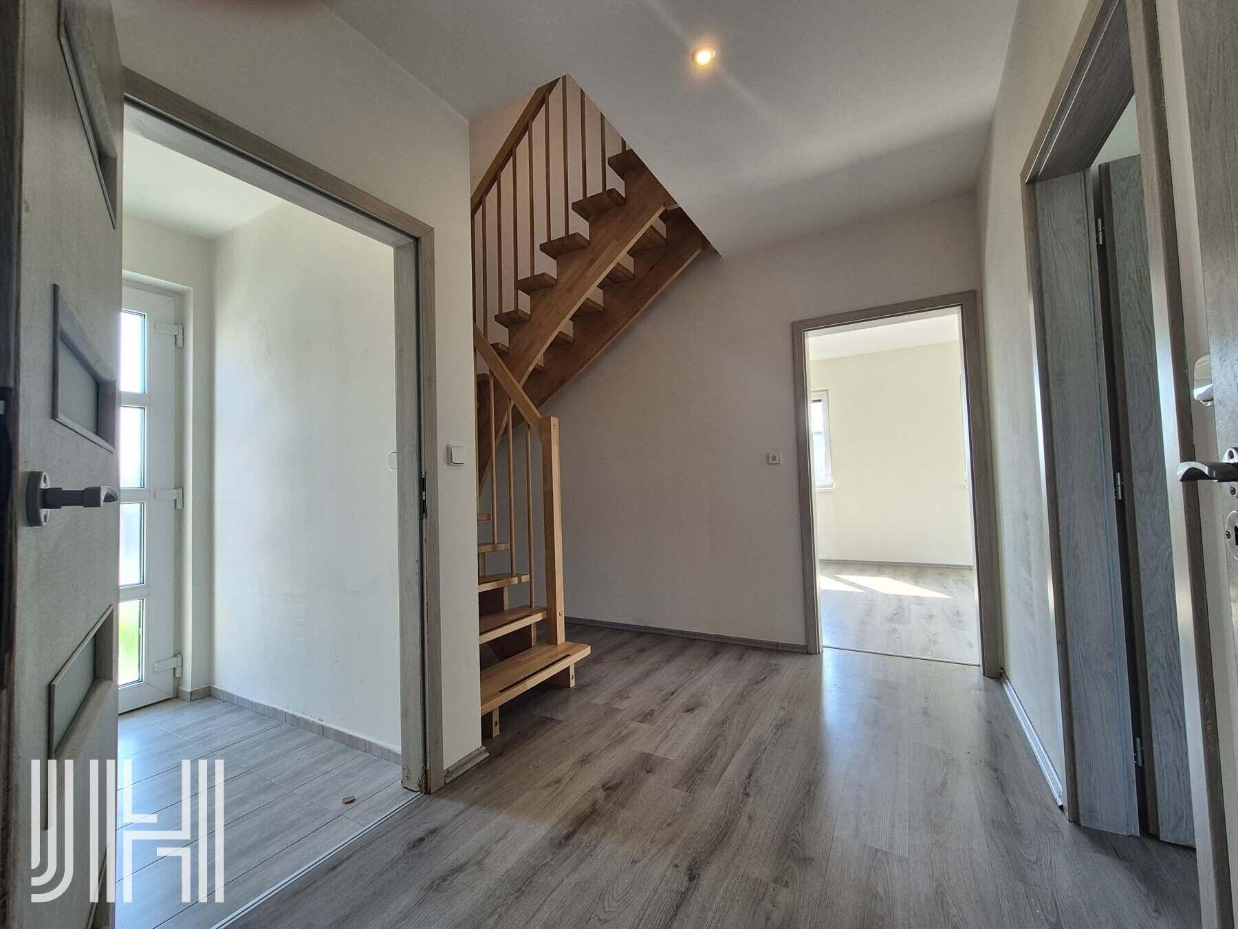 Nabízíme k prodeji rodinný dům vel. 5+kk nacházející se v obci bezprostředně navazující na město Prostějov s výbornou dostupností na dálnici Olomouc – Brno. Dům je dvoupodlažní volně stojící dřevostavba se sedlovou střechou o podlahové ploše 100 m2 v jejímž přízemí se nachází zádveří, schodišťová chodba, obývací pokoj s kuchyňským koutem a vstupem na terasu, pokoj, WC s umyvadlem a sprch. koutem a technická místnost s místem pro pračku. V 1. patře domu jsou tři pokoje a koupelna (WC, umyvadlo, sprch. kout a rohová vana). Dům je napojen na veškeré inženýrské sítě, obecní voda, kanalizace, elektrické podlahové vytápění s termostatem v každé místnosti, ohřev teplé vody el. bojlerem (150 l). Dům byl postaven v roce 2020 zavedenou místní stavební firmou na klíč specializující se na výstavbu dřevostaveb. Dům je situován do zahrady s přístupem okolo domu z každé strany. Možnost postavení garáže vedle domu, zahrada orientovaná na západní stranu, oplocená, zatravněná. Na zahradě je montovaná kůlna a sběrná nádoba na dešťovou vodu pro závlahu a splachování WC v domě. Parkování pro 2 auta na zpevněné ploše před domem. Výborná poloha na okraji obce s novou výstavbou samostatných rodinných domů. PENB – B, roční spotřeba elektřiny 4,8 MWh. Zast. plocha: 65 m2, zahrada: 269 m2.