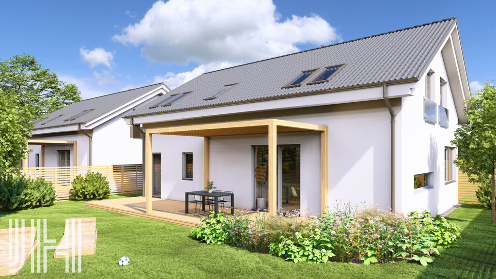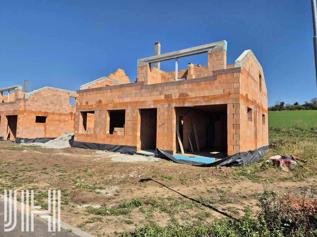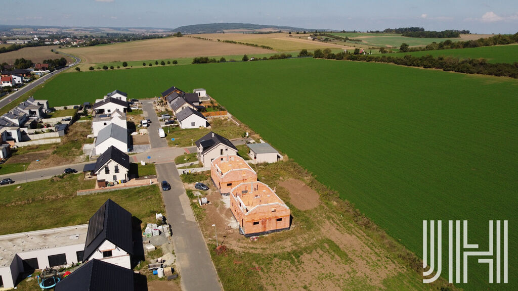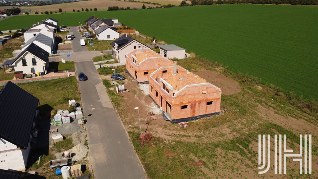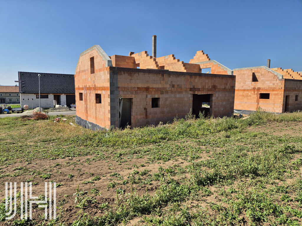 Nabízíme téměř dokončený rodinný dům vel. 4+kk s garáží na okraji obce v nově vznikající vilkové čtvrti s výbornou dostupností na dálnici Brno – Olomouc. Dům bude dokončen v 3Q/2026, napojen na inženýrské sítě. Dům o podlahové ploše přízemí 103 m2 a 1. patra o ploše 92 m2 má v přízemí zádveří, obývací pokoj s kuchyňským koutem, schodiště, WC s umyvadlem a sprchovým koutem a garáž s technickou místností. V 1. patře jsou 3 pokoje, samostatné WC s umývátkem a koupelna (2x umyvadlo, vana, sprchový kout, místo pro pračku). Vytápění domu a ohřev teplé vody je zajištěno tepelným čerpadlem systému vzduch – voda, podlahové teplovodní vytápění v obou podlažích, příprava na krb v přízemí. Exteriér domu bude dokončen, příprava pro venkovní žaluzie, keramická střešní krytina Tondach, el. garážová vrata, příjezdová cesta do garáže ze zámkové dlažby. V interiéru domu budou dokončeny omítky, vnitřní podlahy obytných místností budou připraveny pro pokládku vinylových podlah. Zahrada bude srovnána a upravena zemina. V ceně domu není kuchyňská linka, vybavení koupelen a WC (obklady, sanita), nášlapy schodišťových stupňů, interiérové dveře, krbová vložka, zábradlí schodiště, okapové chodníky a vinylové podlahy. Orientace domu na jižní a severní stranu. PENB – A. Výborná poloha na okraji obce s krásným výhledem na město, snadná dostupnost do centra města i na dálnici. Celková výměra pozemku: 662 m2.