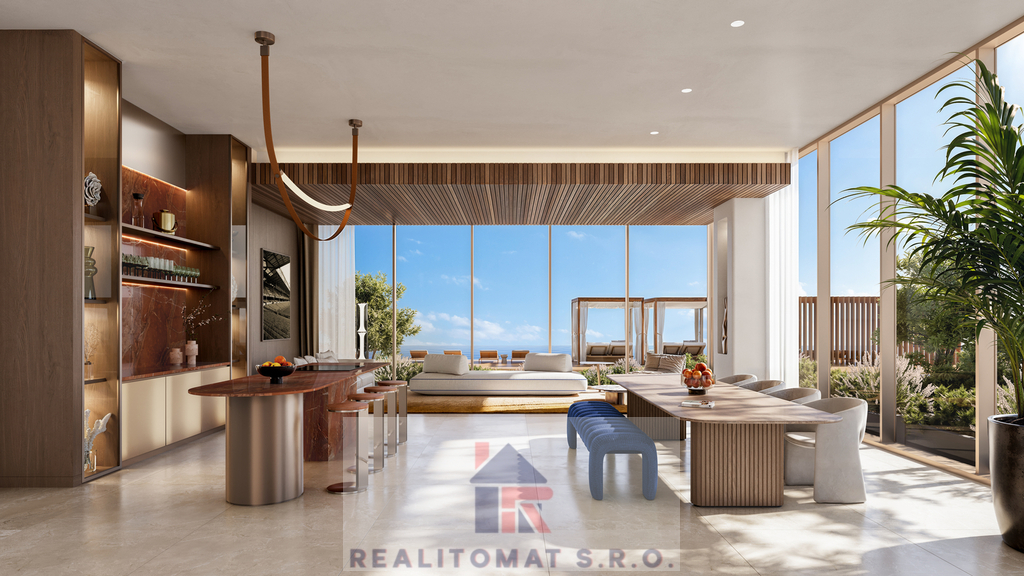 Interiéry: Biofilní design propojující přírodu s městským komfortem, špičkové materiály a inteligentní technologie.