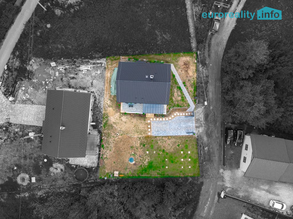 Pozemek je rovinatý, částečně oplocený a nabízí dostatek prostoru pro zahradu, dětské hřiště či venkovní posezení. Vjezdová brána umožňuje pohodlný příjezd a parkování přímo na pozemku.
