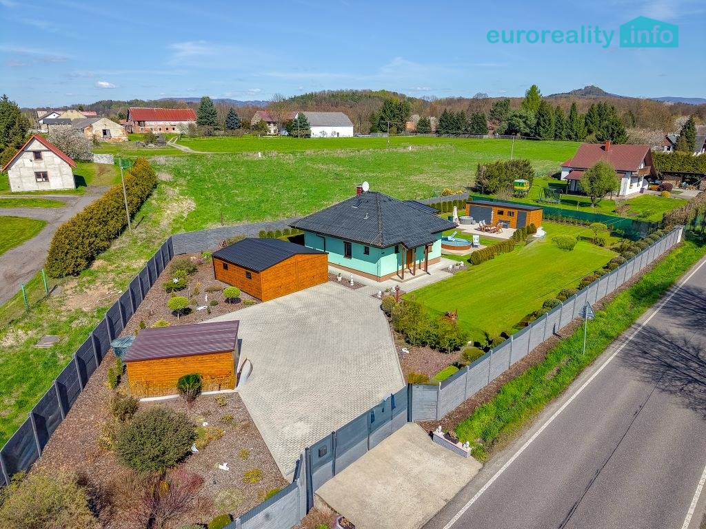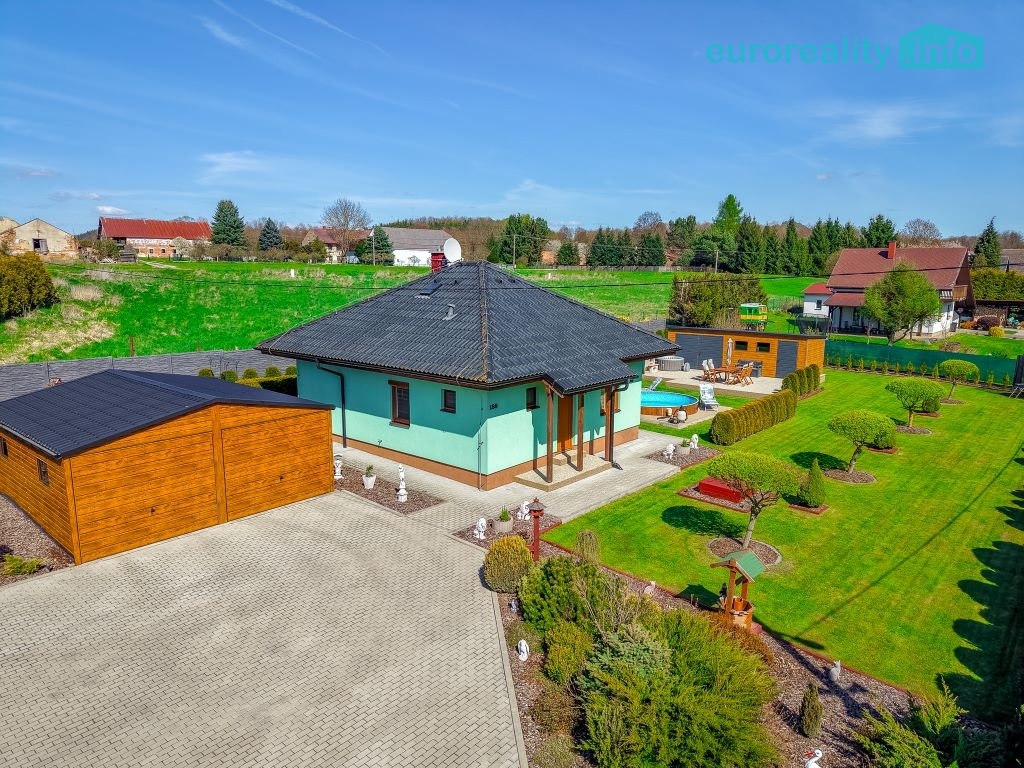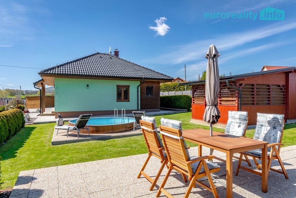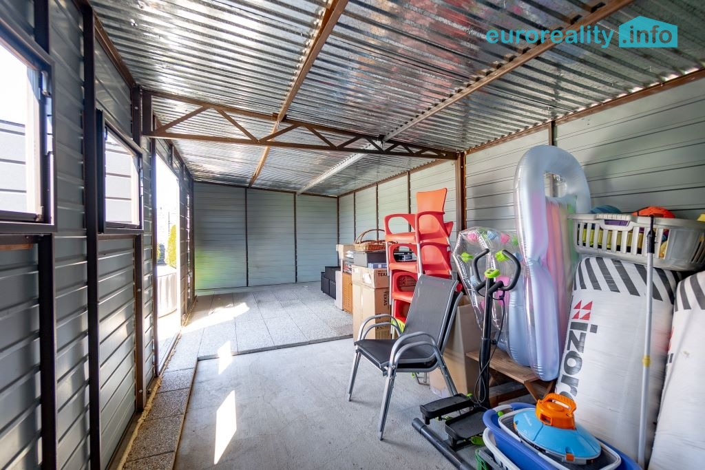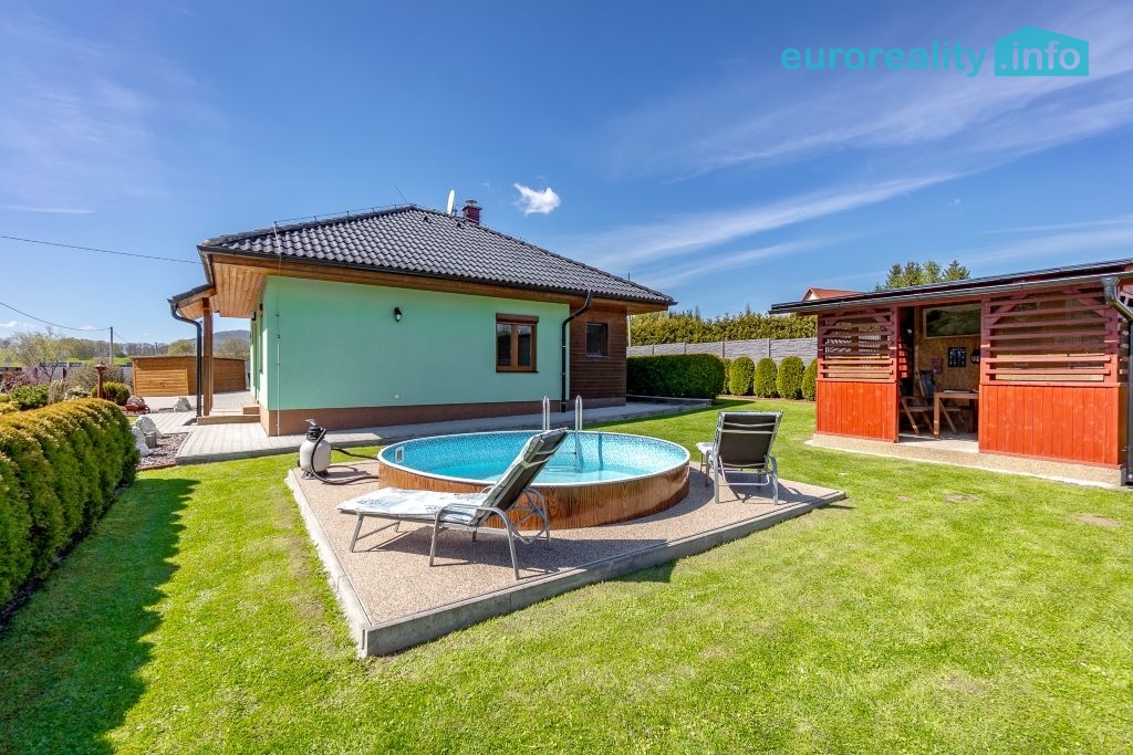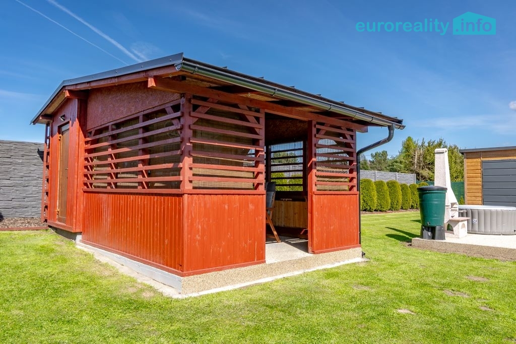 Pro odpočinek a volnočasové aktivity je k dispozici krytá pergola o velikosti 12 m² s nerezovou plynovou kuchyňkou, zapuštěný bazén, elektrická vířivka, trampolína a betonový venkovní gril. Tento prostor je ideální pro rodinná setkání, grilování i relaxaci v soukromí.
