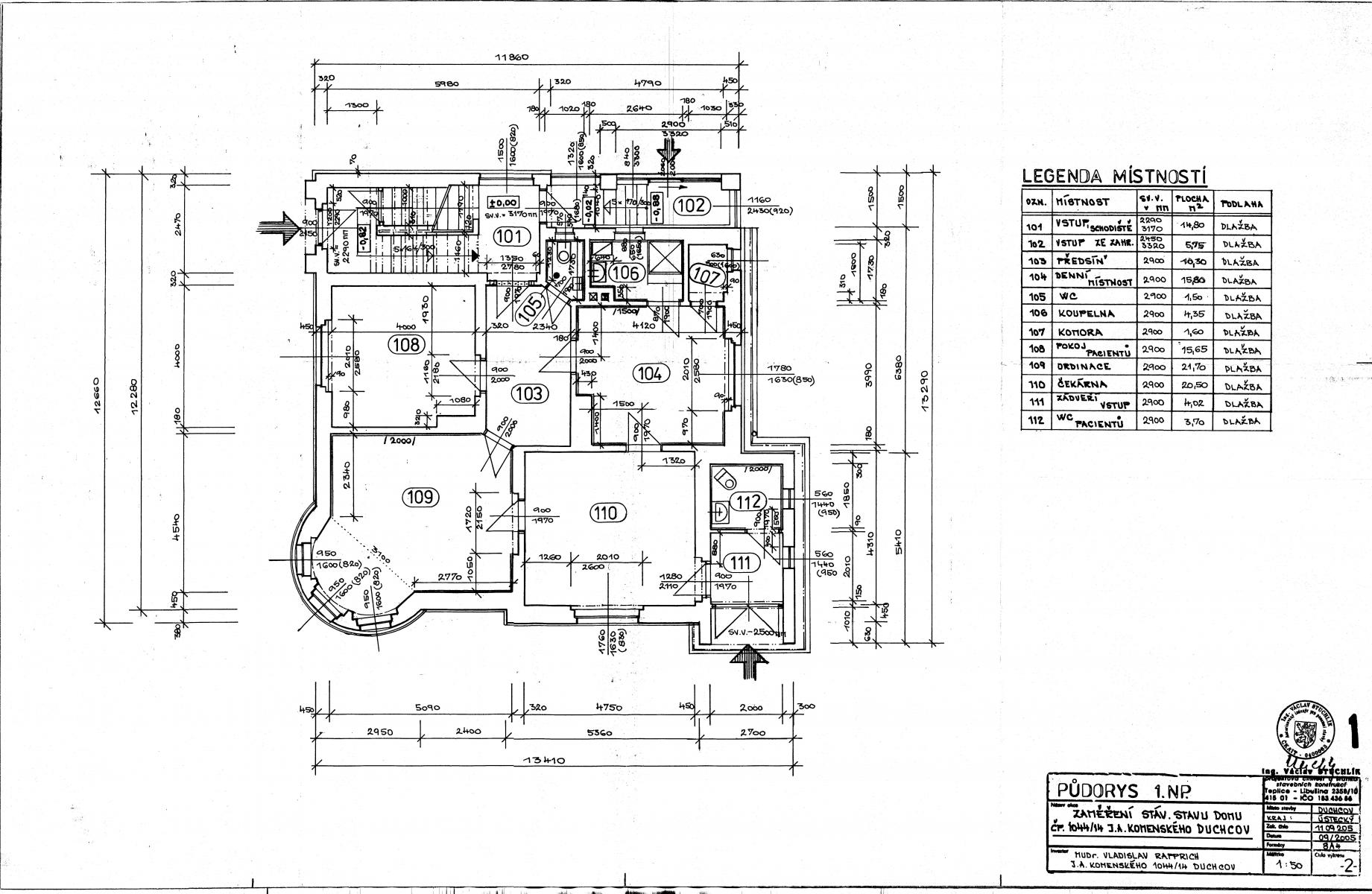 - 1. patro (102,1 m2): 3 místnosti, kuchyně, koupelna, WC, chodba plnohodnotná bytová jednotka.