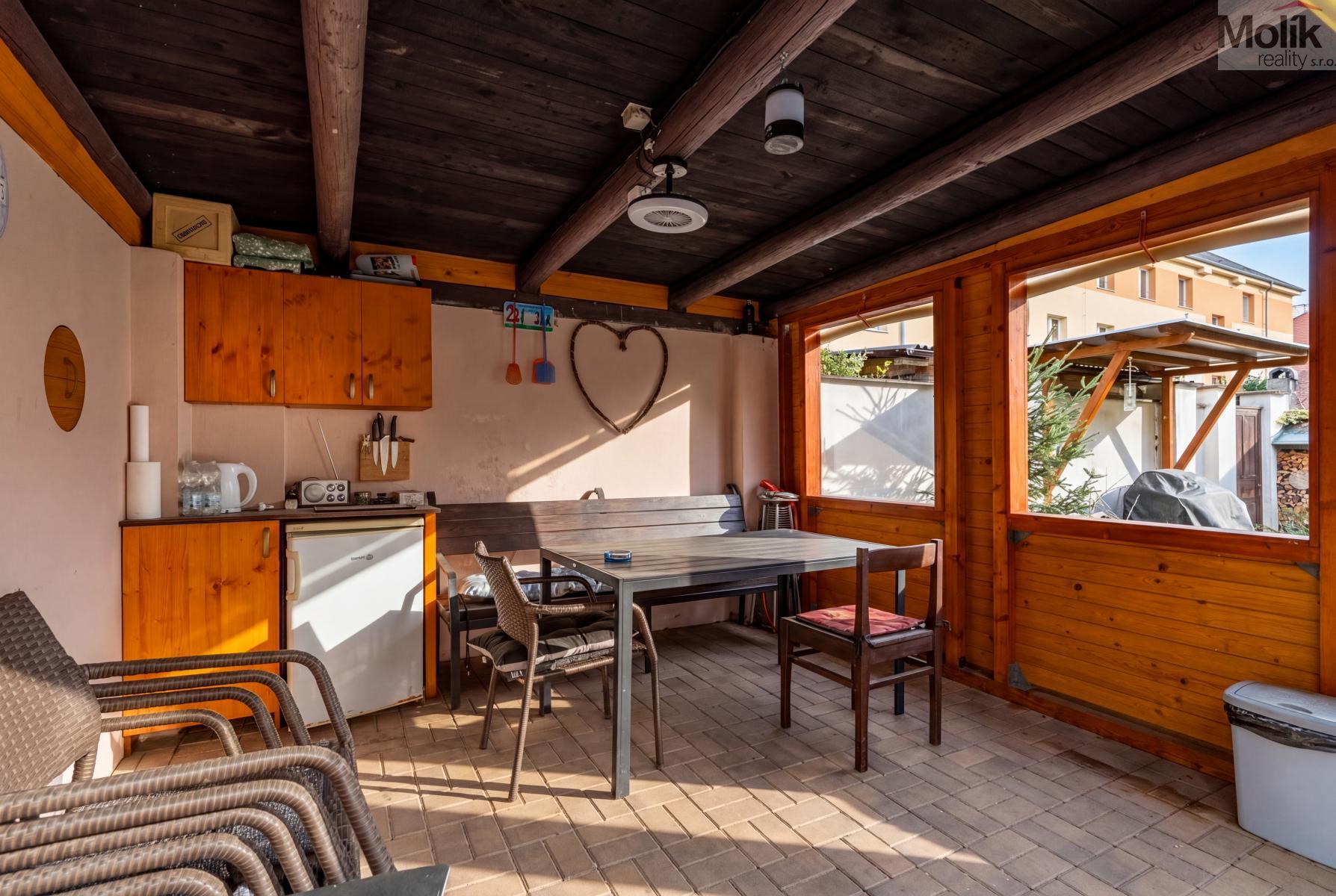 Dům je z větší části podsklepen (cca ze 2/3), což nabízí dostatek úložných prostor či možnost dalšího využití. Součástí nemovitosti je udržovaná zahrada o výměře 190 m2, která poskytuje příjemné zázemí pro odpočinek i rodinné aktivity. Nachází se zde pergola k posezení a venkovní bazén, ideální pro relaxaci v letních měsících. Další výhodou je praktické zázemí domu nachází se zde dílna o výměře 13 m and sup2; a samostatná místnost pro ukládání kol, což ocení zejména rodiny či zájemci s potřebou dostatečných úložných prostor. Střešní krytina je řešena asfaltovým (bitumenovým) šindelem.