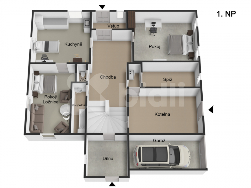 🖼 Součástí nabídky jsou vizualizace interiéru (kuchyně, ložnice, obývací pokoj, koupelna) - inspirace, jak může váš budoucí domov vypadat.