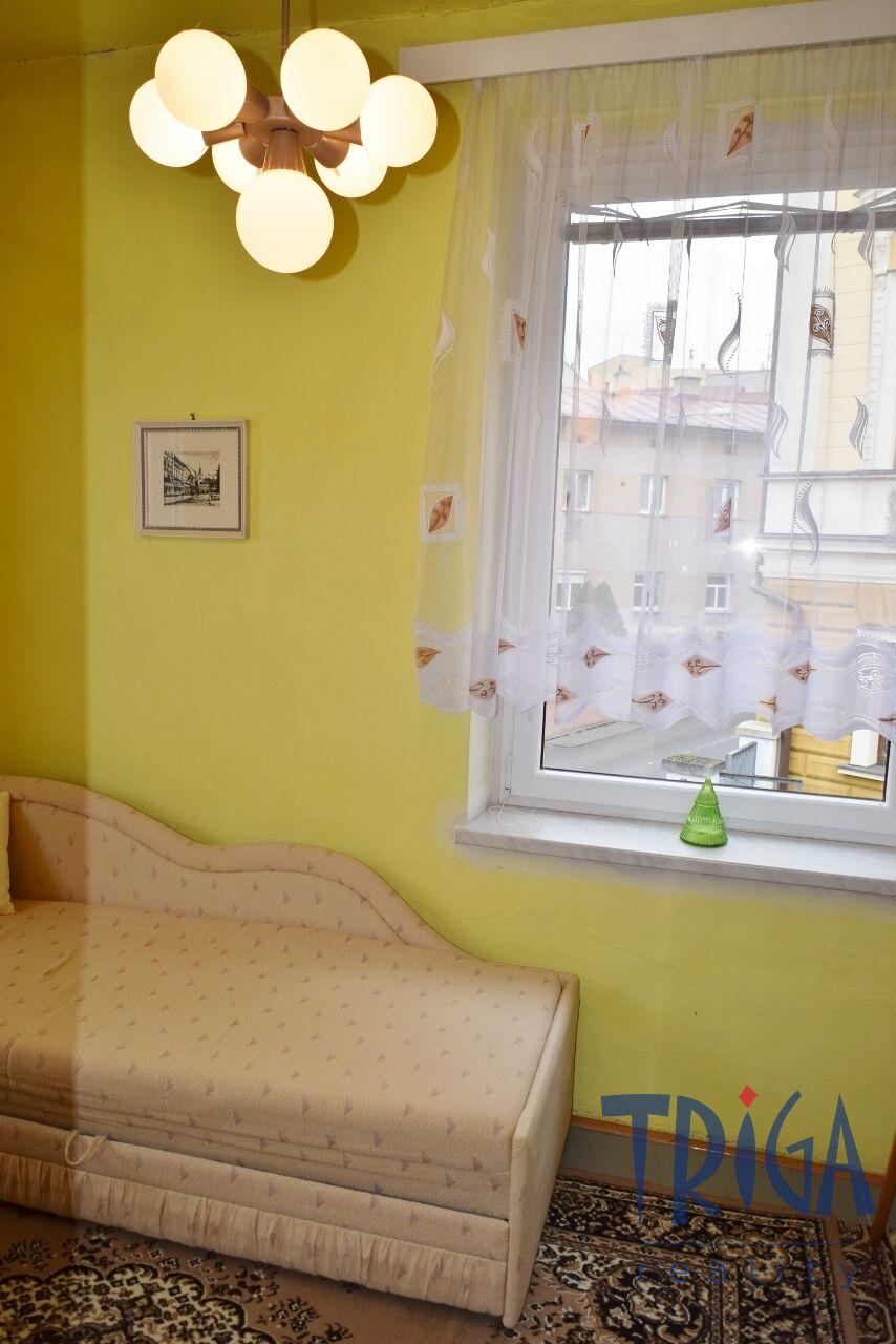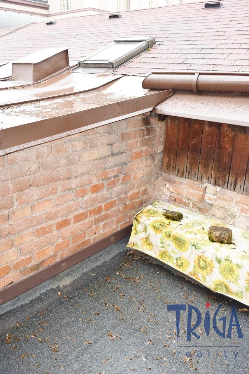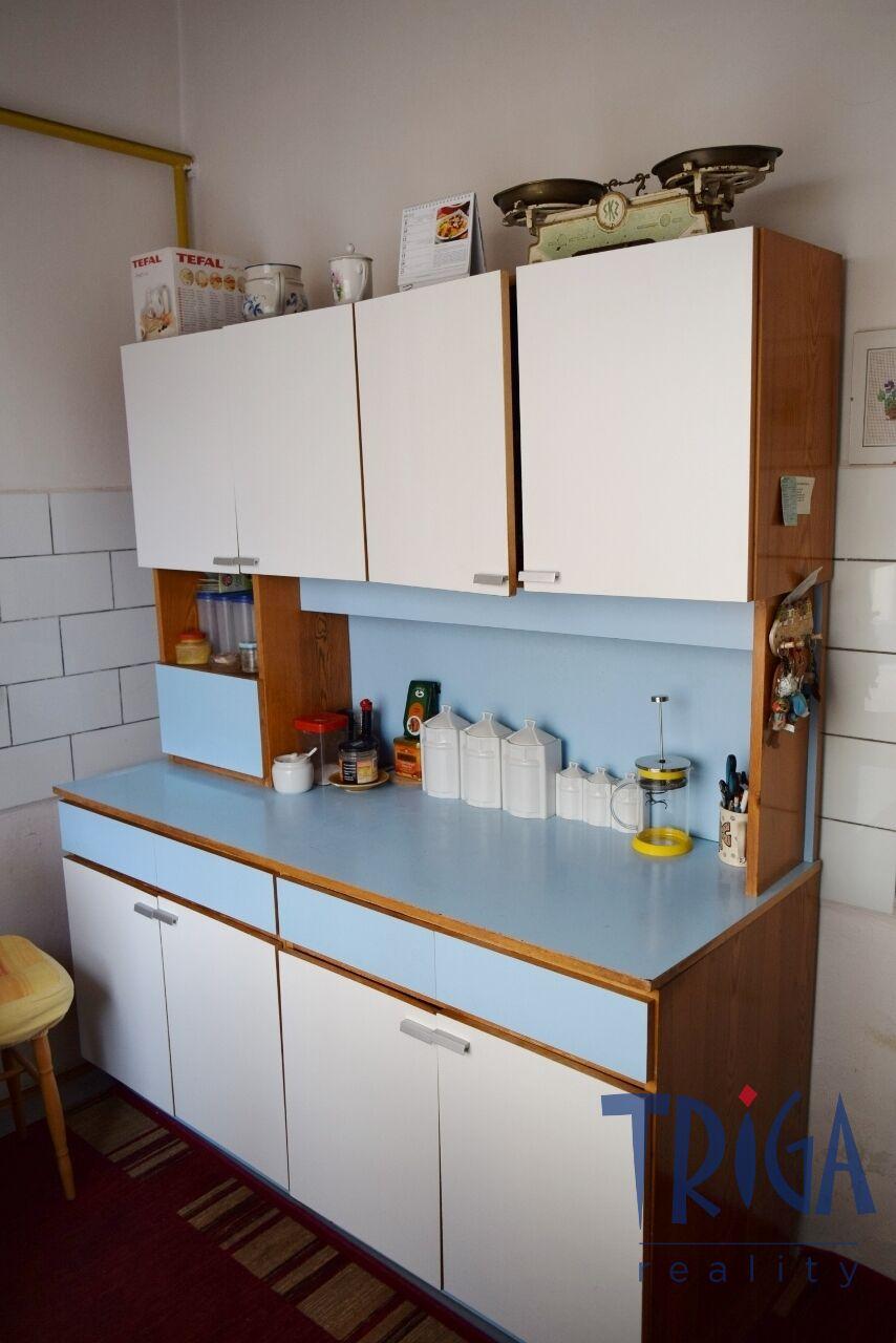 Byt je vybaven původní kuchyňskou linkou a kombinovaným sporákem.