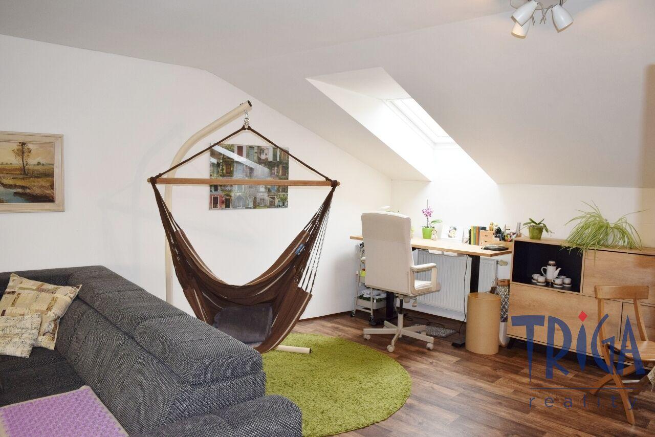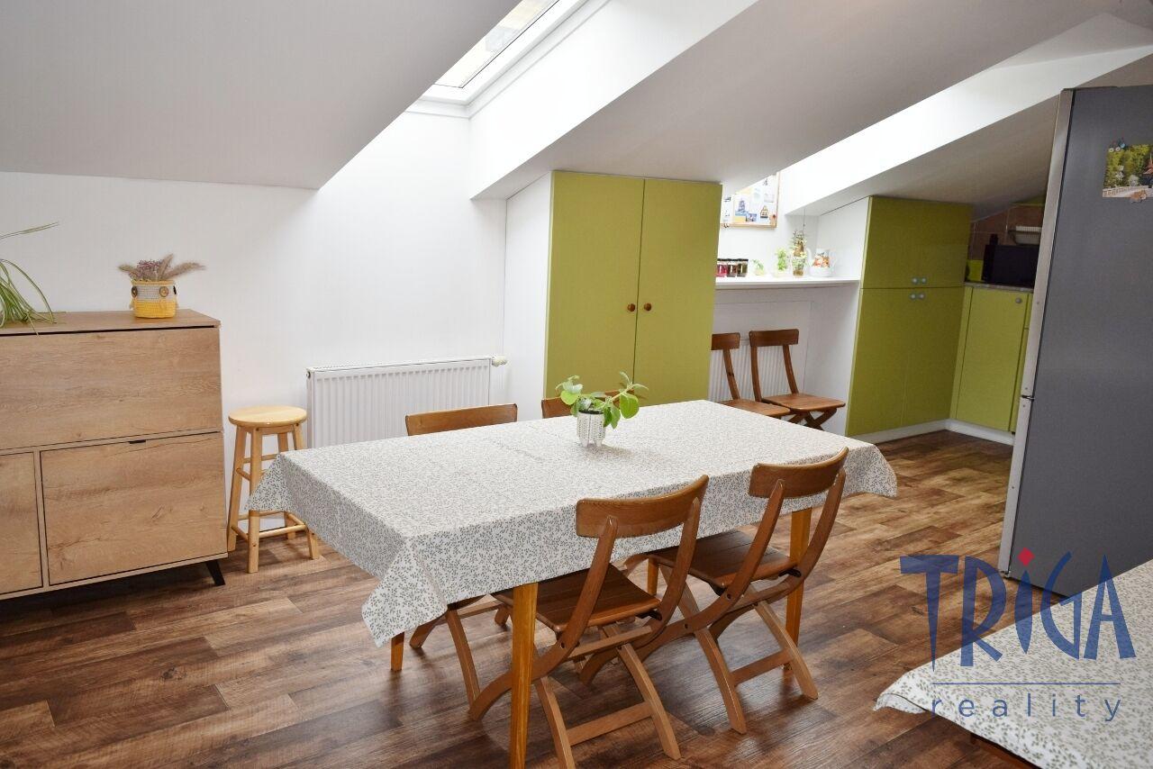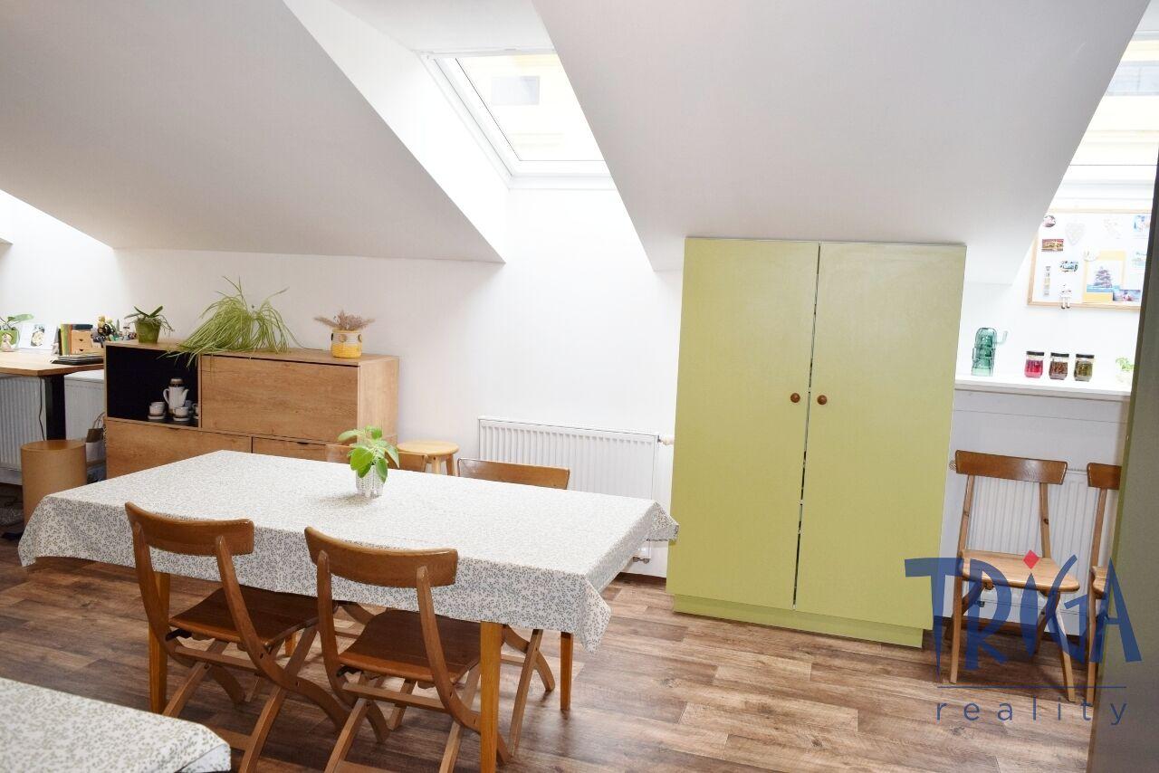 Podkrovní byt nabízí prostornou chodbu se vstupem na terasu orientovanou na jihozápad, slunný obývací pokoj s kuchyní a jídelnou, ložnici, dětský pokoj, dvě koupelny se sprchovými kouty a dvě samostatná WC. Interiér je stylový a praktický, s důrazem na maximální využití prostoru, dostatek světla a příjemnou atmosféru. Nemovitost zaujme svou jedinečností i velkým prostorem.