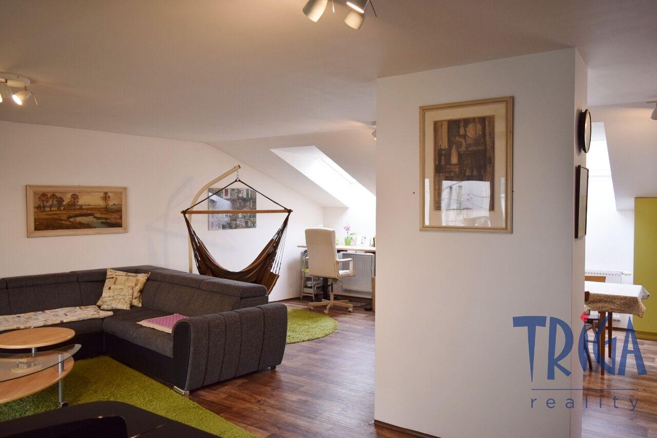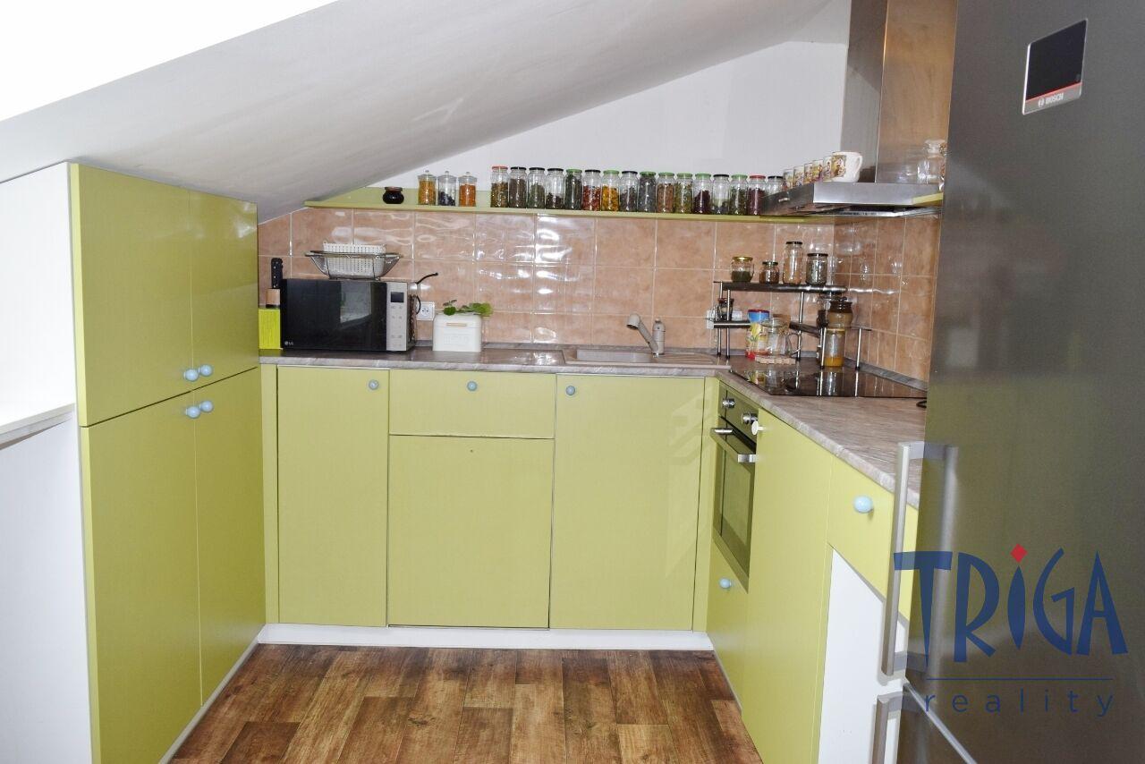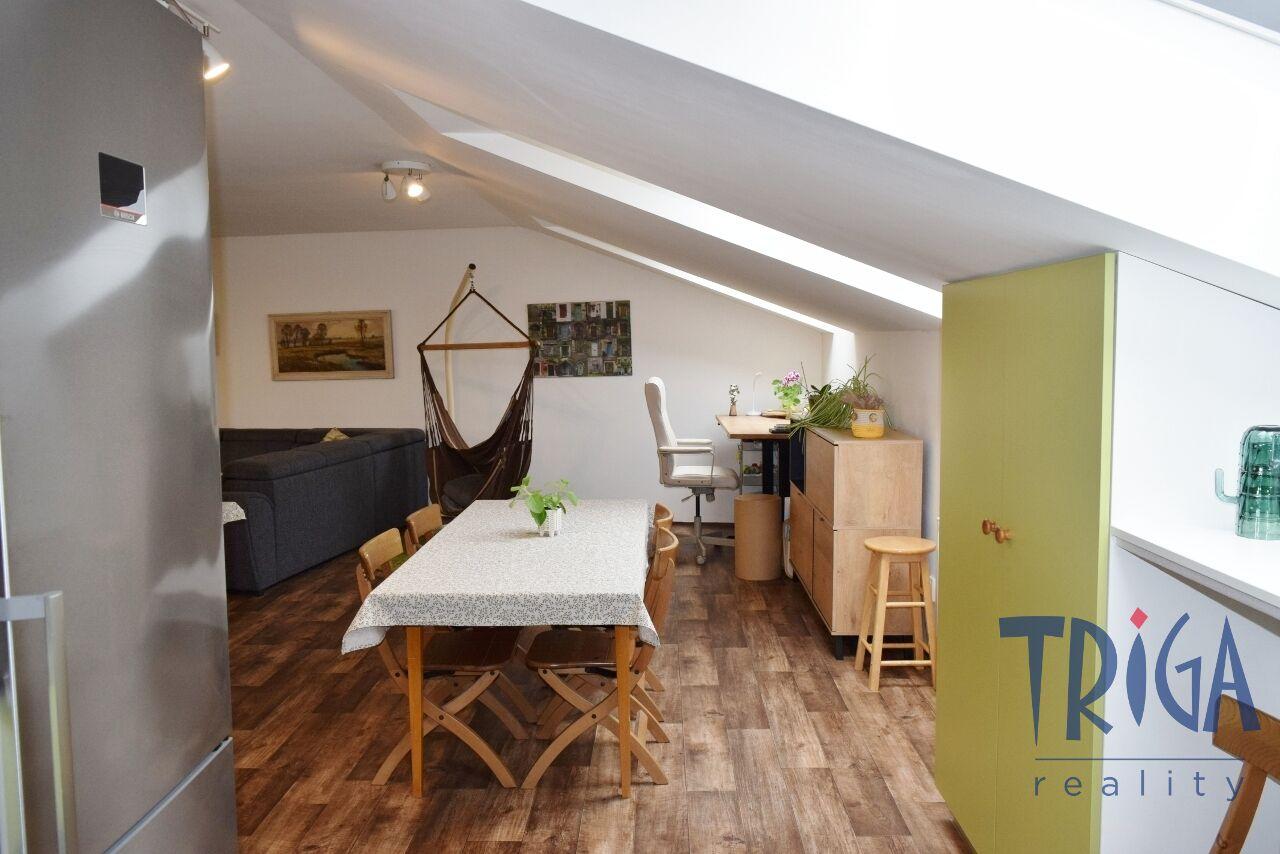 Podkrovní byt nabízí prostornou chodbu se vstupem na terasu orientovanou na jihozápad, slunný obývací pokoj s kuchyní a jídelnou, ložnici, dětský pokoj, dvě koupelny se sprchovými kouty a dvě samostatná WC. Interiér je stylový a praktický, s důrazem na maximální využití prostoru, dostatek světla a příjemnou atmosféru. Nemovitost zaujme svou jedinečností i velkým prostorem.