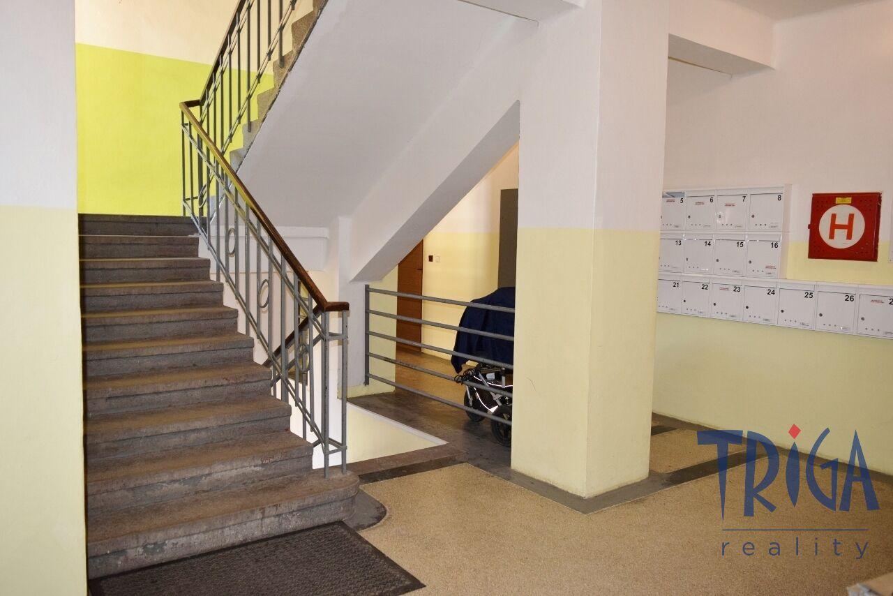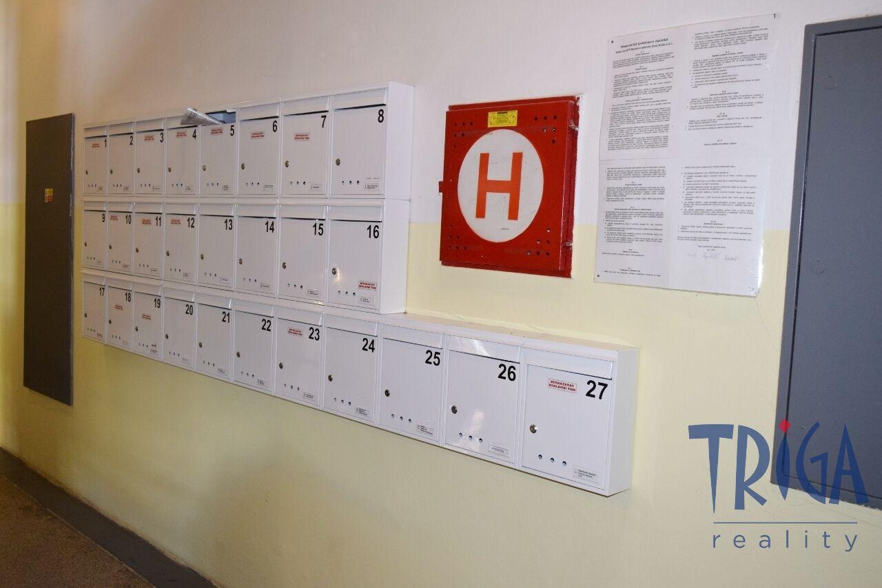 Dům je po nedávné revitalizaci – nové vchodové dveře, kompletní zateplení s novou fasádou, nová střecha i stoupací vedení.