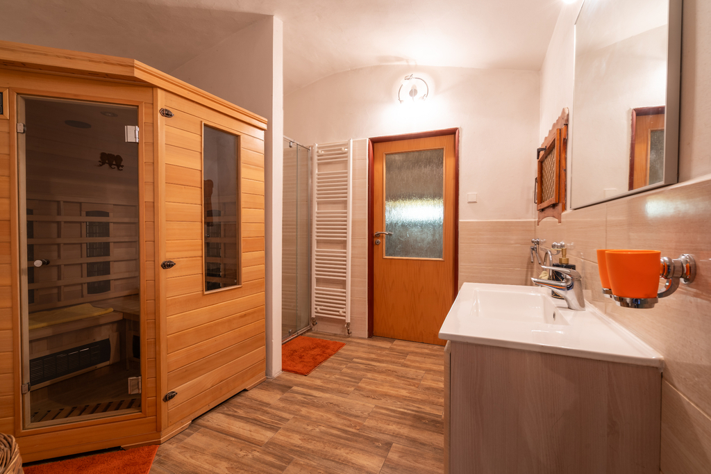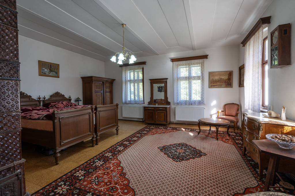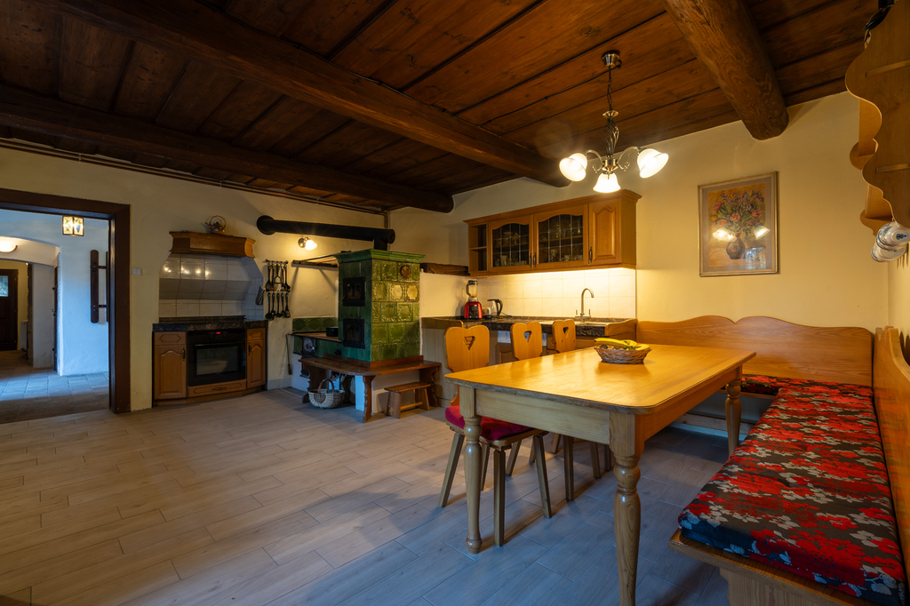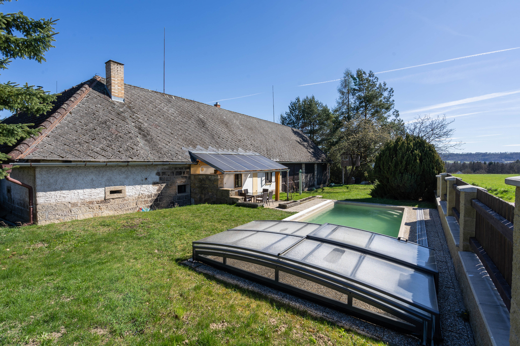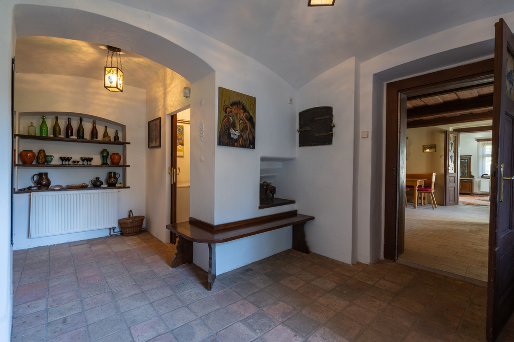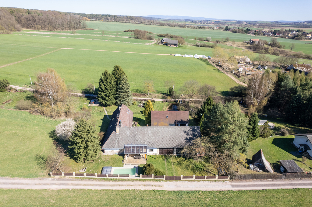 Přízemí rodinného domu je tvořeno prostorným samostatným pokojem, stylovou kuchyní s pecí a stylovou společenskou místností s krbem a s přímým vstupem na částečně krytou terasu. Dále je v přízemí koupelna se saunou, samostatné WC a technické místnosti. V patře domu se nachází 2 samostatné pokoje, koupelna s toaletou a prostorná půda. K domu přiléhá upravená stodola, kterou lze využít ke komerčnímu využití a pořádání společenských akcí. V zadní části domu se nachází terasa s bazénem s nádhernými výhledy do okolí. Vedlejší stavba nabízí apartmánovou jednotku se dvěma samostatnými pokoji, koupelnu s toaletou, samostatným WC, vstupní prostor s kuchyňským a jídelním koutem. K objektu patří také dřevník ve vedlejší stavbě a dílna vedle stodoly. Celkově jsou k dispozici 3 koupelny a 4 toalety.