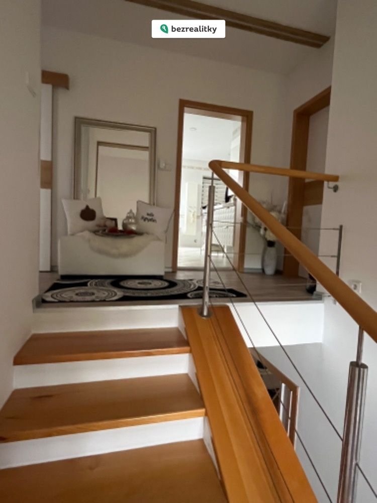Dispozice 5+kk nabízí mnoho možností, jak si upravit jednotlivé místnosti dle osobních představ a potřeb rodiny. K dispozici jsou 4 ložnice se dvěma šatnami, dvě koupelny, dva balkony, prostorná technická místnost využitelná jako prádelna, velký obývací pokoj s jídelnou a moderní kuchyní s výstupem na rozlehlou terasu s krásným výhledem. Dům je částečně podsklepený.