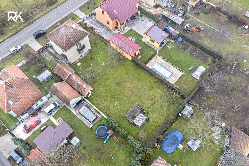 K domu náleží rovná, prostorná zahrada vhodná k relaxaci i rodinnému využití. Obec Dymokury nabízí kompletní občanskou vybavenost a výbornou dopravní dostupnost – Praha cca 40 minut, Hradec Králové velmi dobře dostupný.