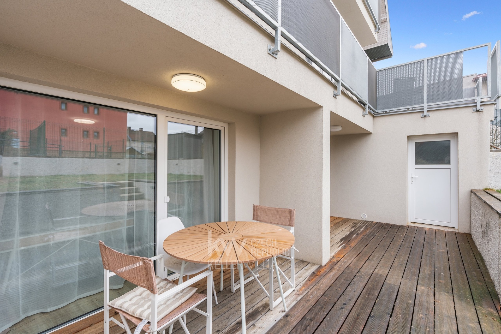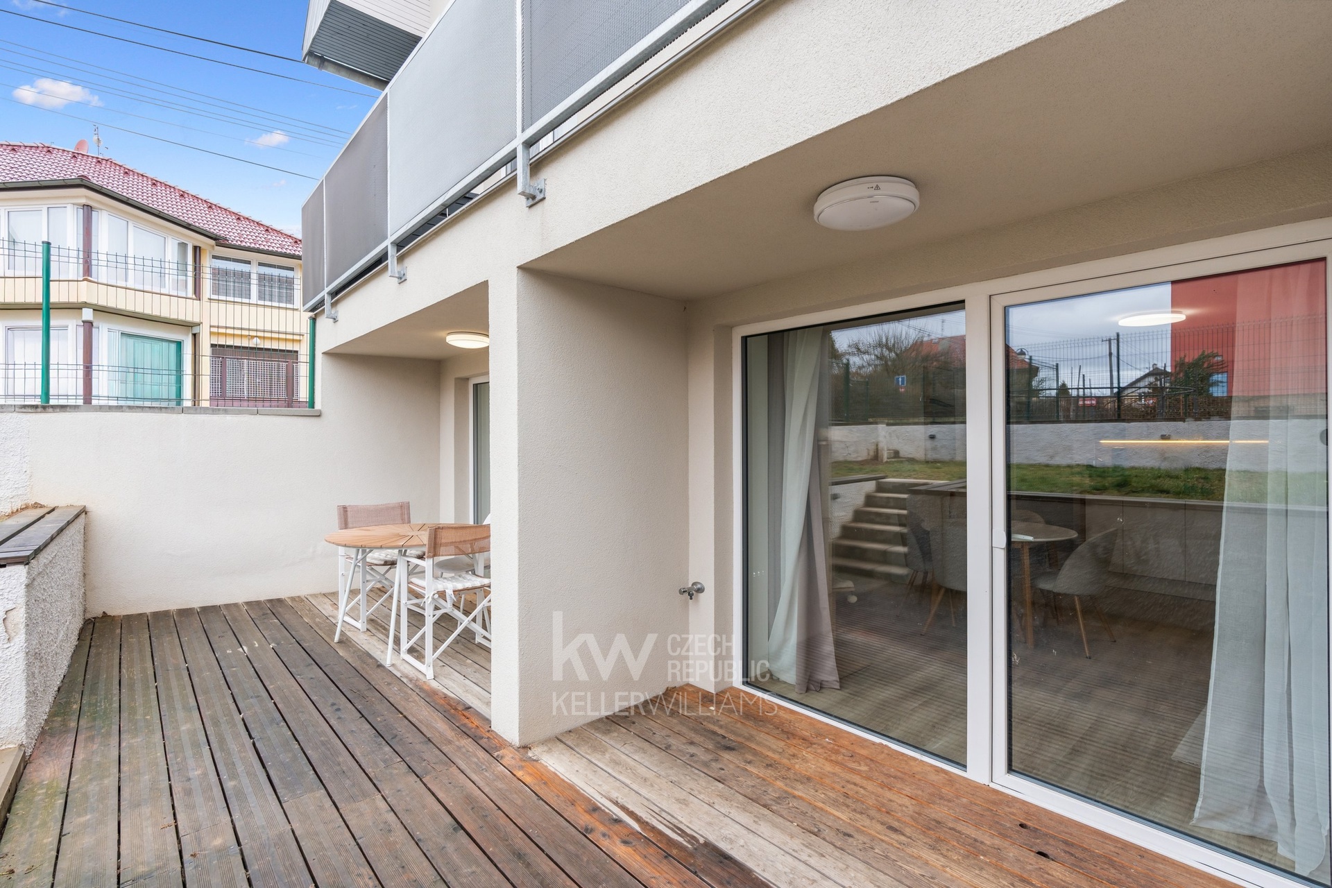 To, co však tuto nemovitost skutečně odlišuje, je venkovní prostor – k bytu náleží terasa a dvě zahrady o celkové výměře 166 m². Tento prostor nabízí ideální zázemí pro relaxaci, posezení s rodinou či přáteli, zahradničení nebo bezpečné místo pro děti. Kombinace bytu a takto velkorysé zahrady je v této lokalitě naprosto výjimečná.