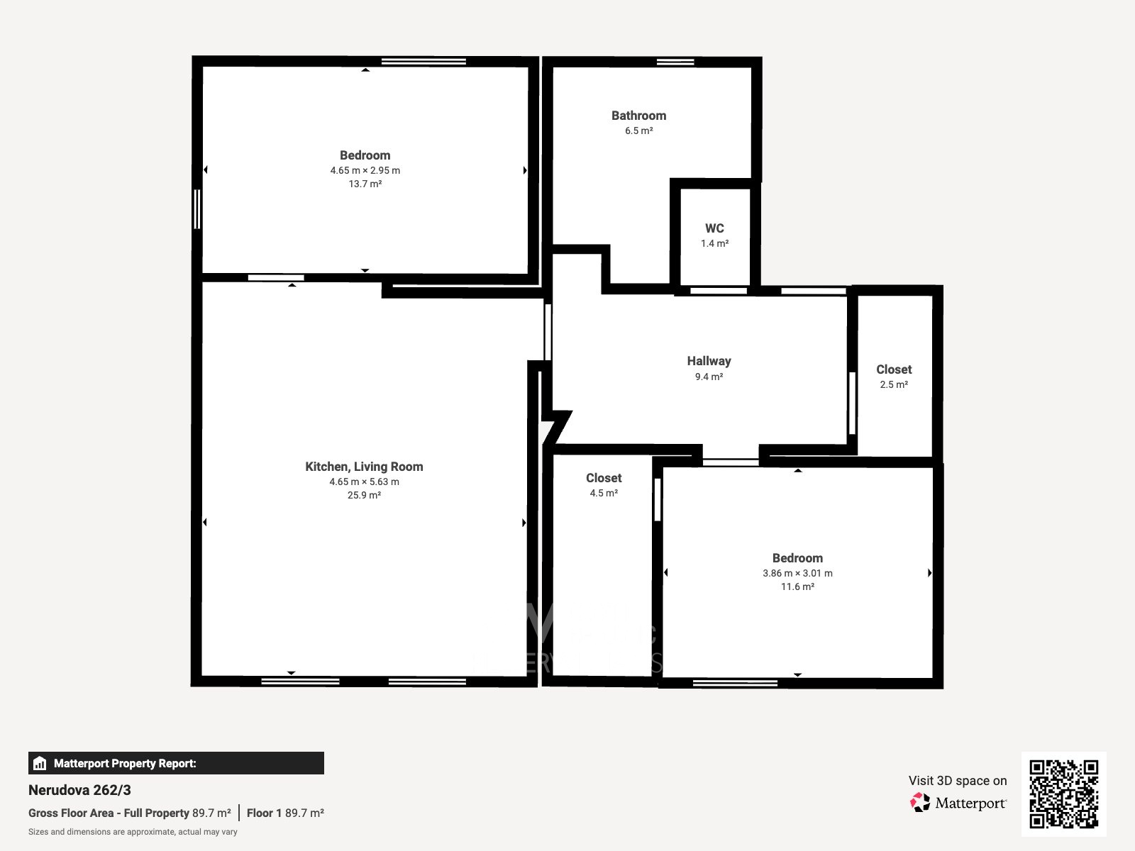 Bytová jednotka o celkové výměře 96 m² nabízí velmi komfortní a praktické uspořádání. Dominantou je prostorný obývací pokoj s kuchyňským koutem, který přirozeně propojuje obytnou a jídelní část a tvoří hlavní centrum bytu. Dále jsou k dispozici dva samostatné pokoje, které mohou sloužit jako ložnice, dětský pokoj nebo pracovna.
