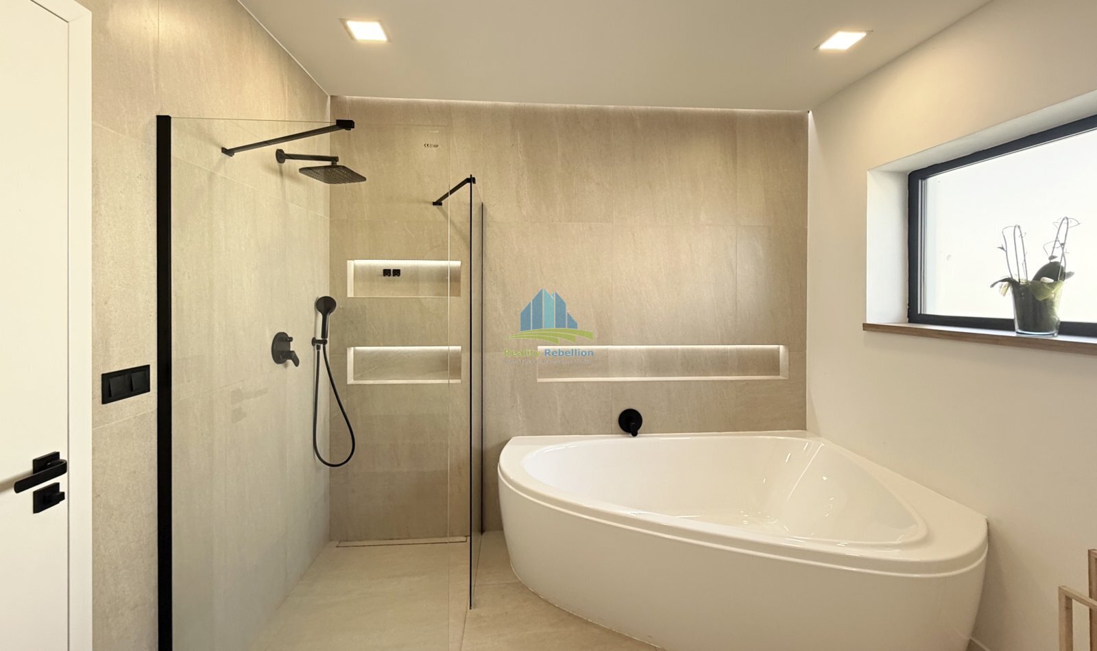 Tyto prvky zajišťují nejen vysoký komfort bydlení, ale také výraznou úsporu nákladů a připravenost na budoucí životní styl. Samozřejmostí je podlahové topení v celém domě.