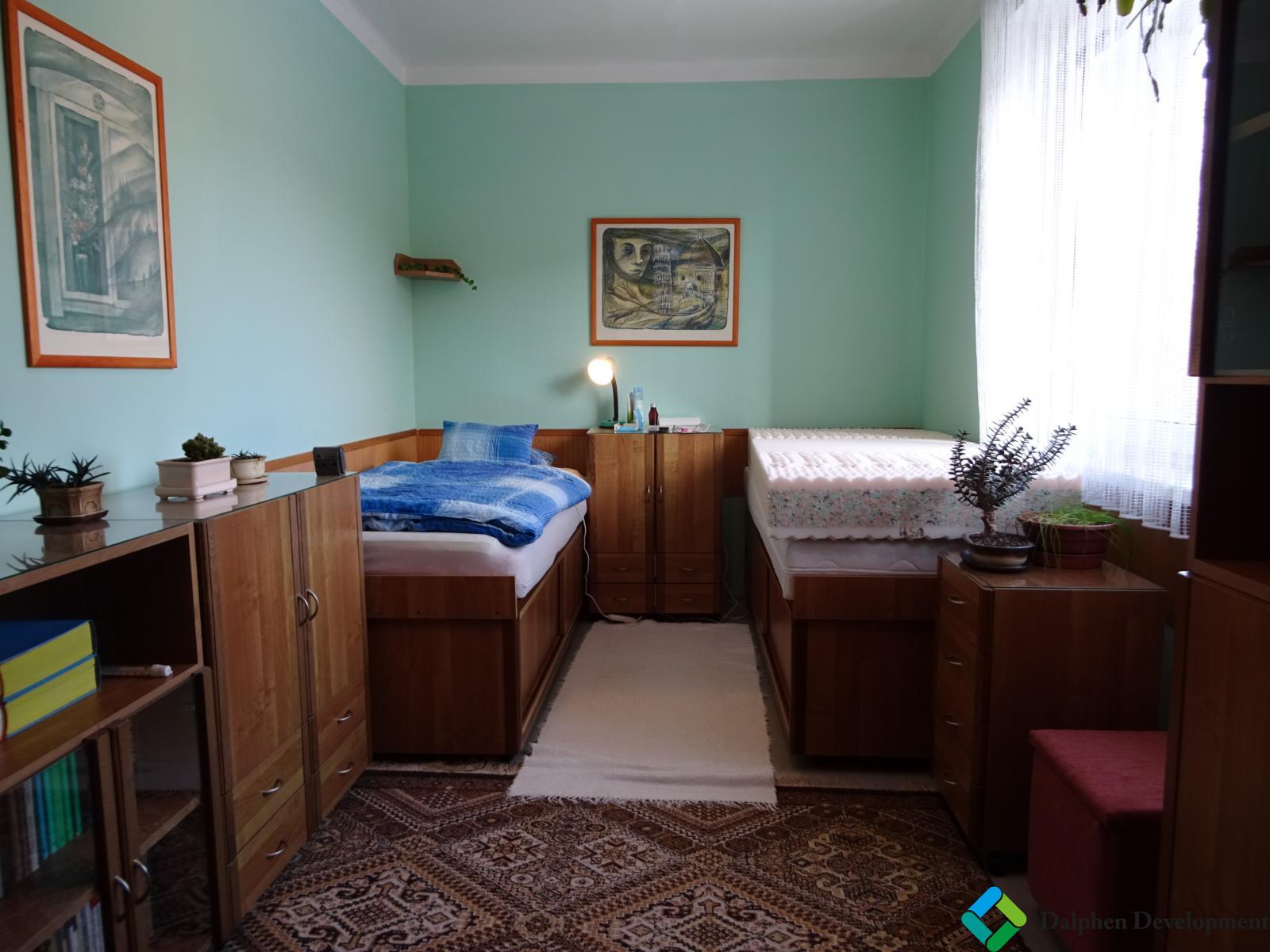 Prostorná ložnice, přes kterou se jde do komory. Komoru lze využít jako pracovnu nebo šatnu!