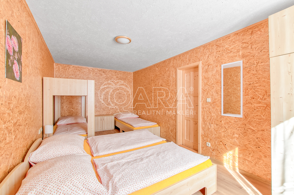 Hlavní budova penzionu o ploše 182 m² v přízemí a dalších 110 m² v patře prošla částečnou rekonstrukcí. V roce 2010 byla vyměněna všechna okna za plastová s dvojskly, v roce 2015 proběhla kompletní rekonstrukce pokojů včetně elektroinstalace, rozvodů vody a odpadů. V patře se nachází pět pokojů s vlastním sociálním zázemím, s celkovou kapacitou 16 hostů. Přízemí tvoří plně funkční restaurace s barem, kuchyní, sklady, technickým zázemím i klenbovým sklepem. Restaurace má kapacitu 60 míst uvnitř a dalších 30 na venkovní terase.